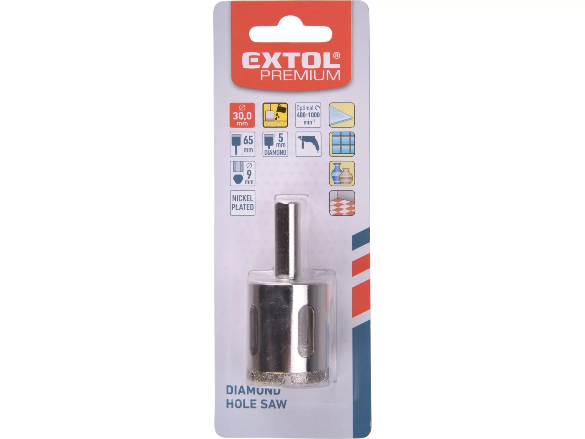 Korunka vykružovací diamantová na sklo a keramiku, o 30mm EXTOL PREMIUM 8801987