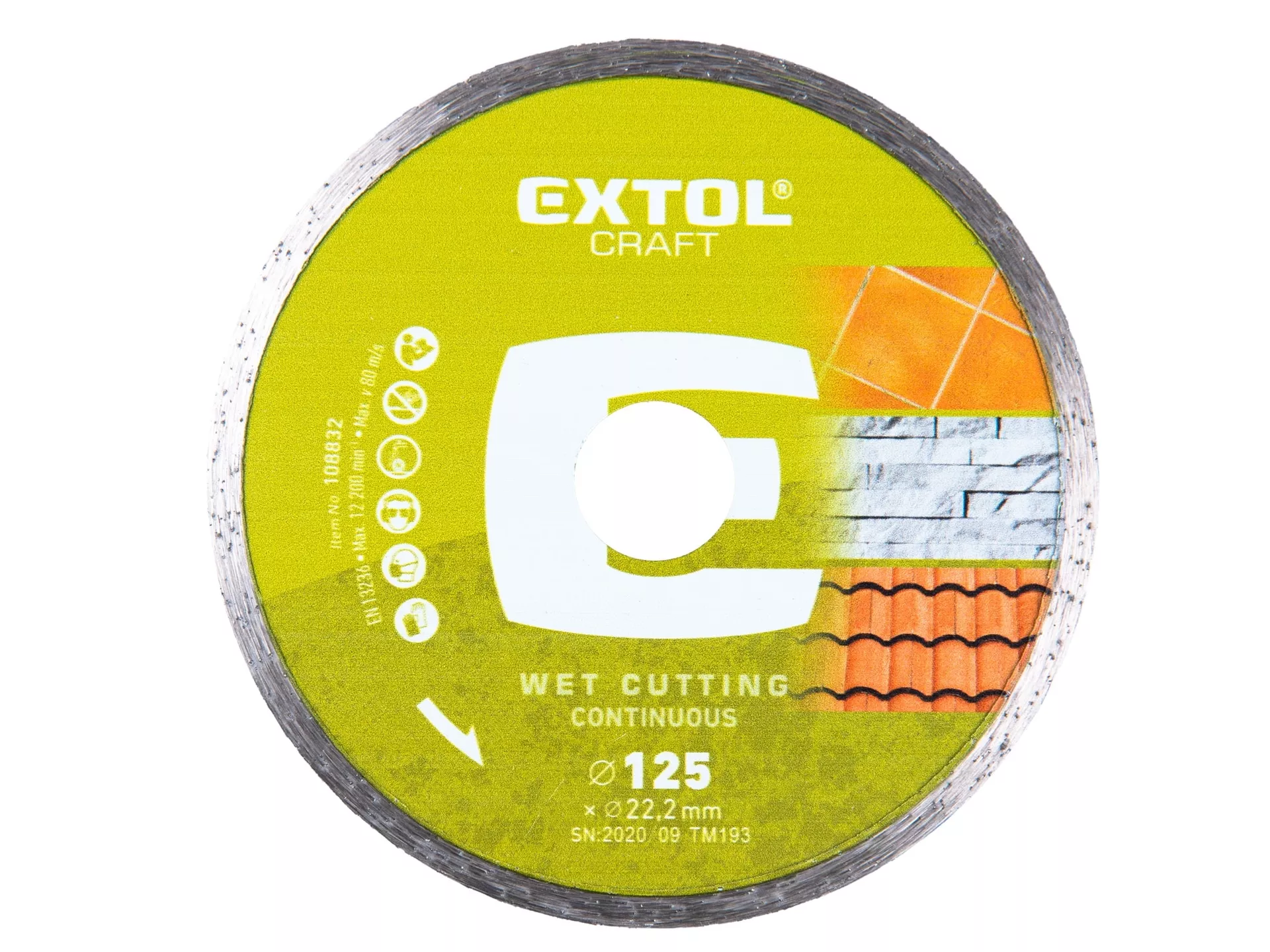 Kotouč diamantový řezný celoobvodový - mokré řezání, o 125x22,2x2mm EXTOL CRAFT 108832