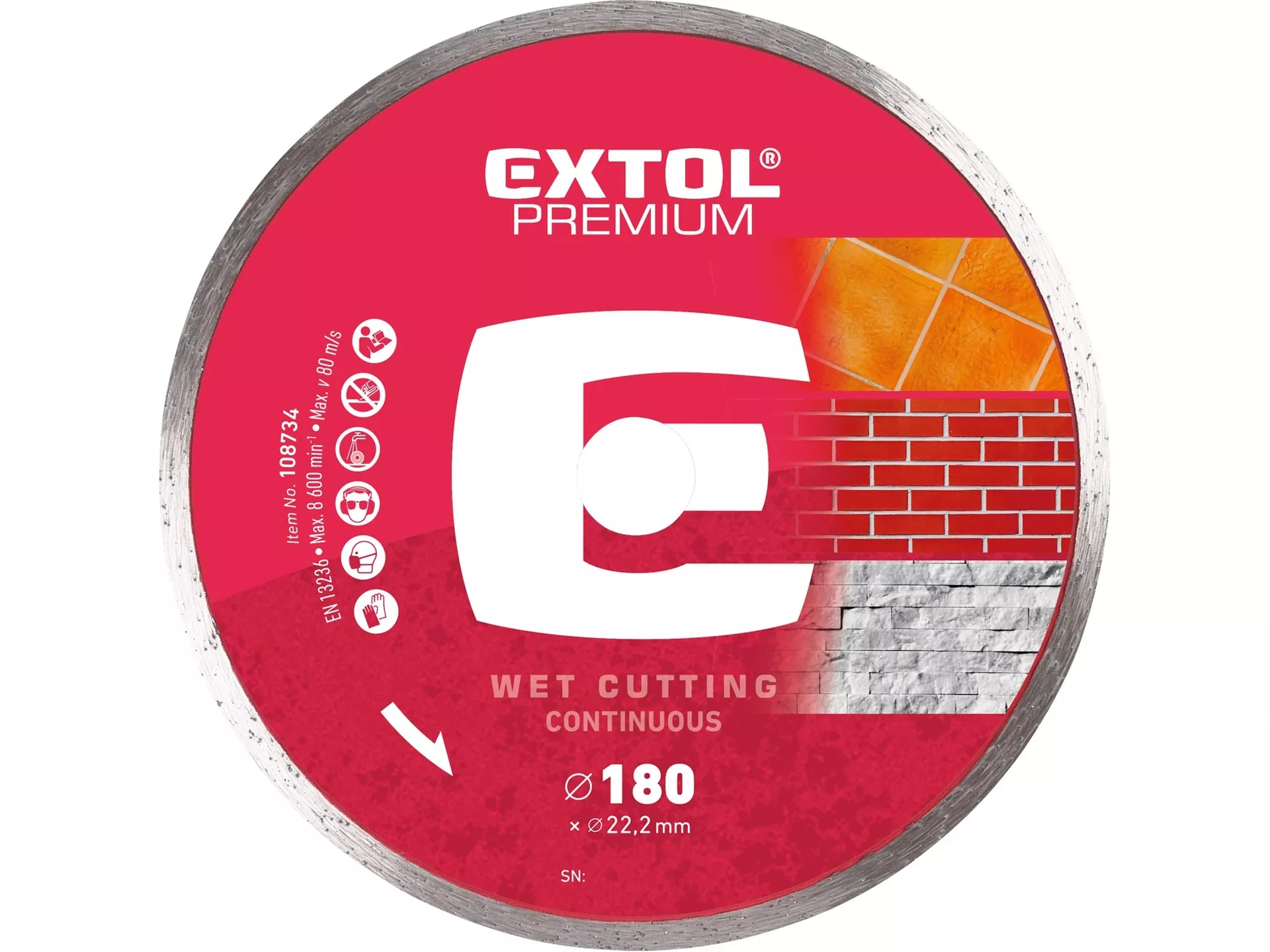 Kotouč diamantový řezný celoobvodový - mokré řezání, o 180x22,2x2,5mm EXTOL PREMIUM 108734