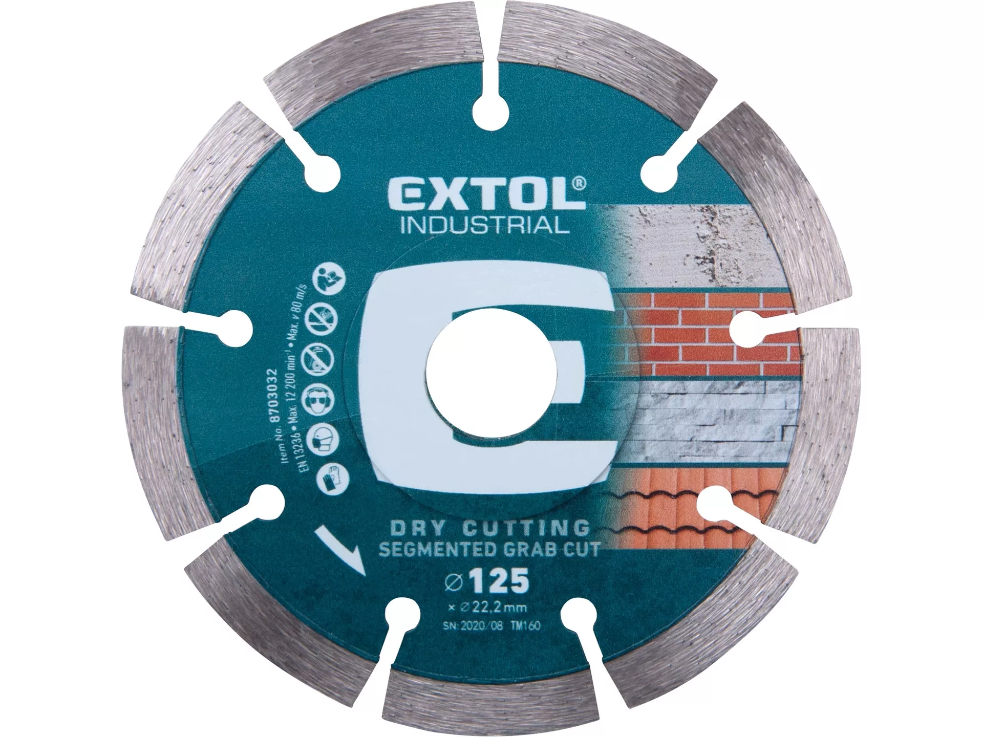 Kotouč diamantový řezný segmentový grab cut, suché řezání, o 125x22,2x2mm EXTOL INDUSTRIAL 8703032