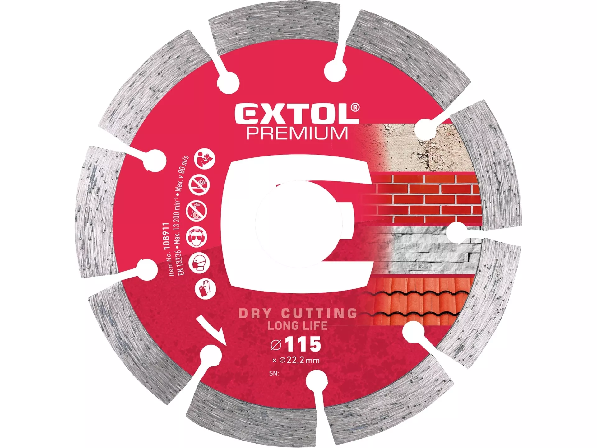 Kotouč diamantový řezný, segmentový long life - suché řezání, 115x22,2x2mm EXTOL PREMIUM 108911