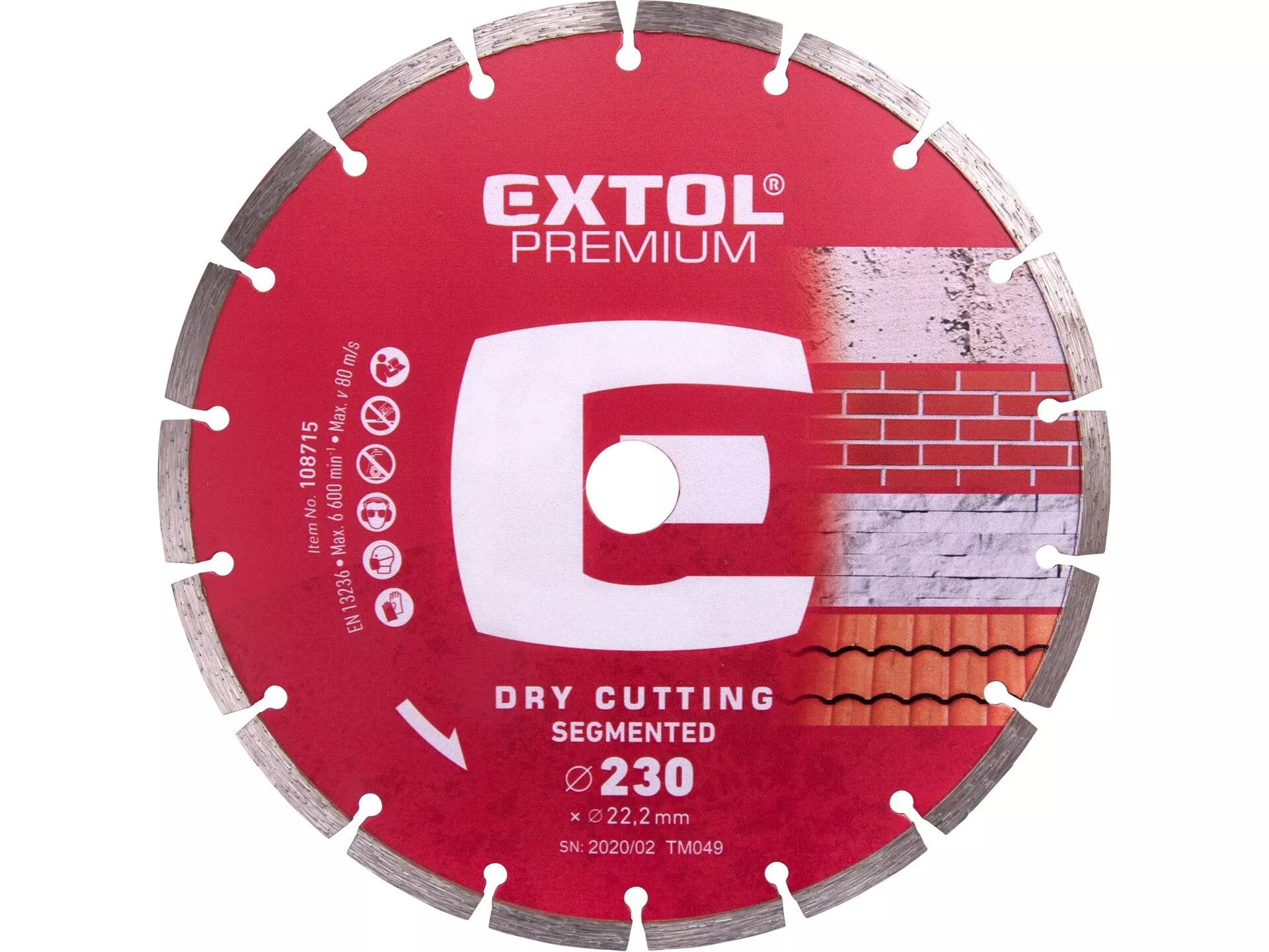 Kotouč diamantový řezný segmentový - suché řezání, o 230x22,2x2,8mm EXTOL PREMIUM 108715
