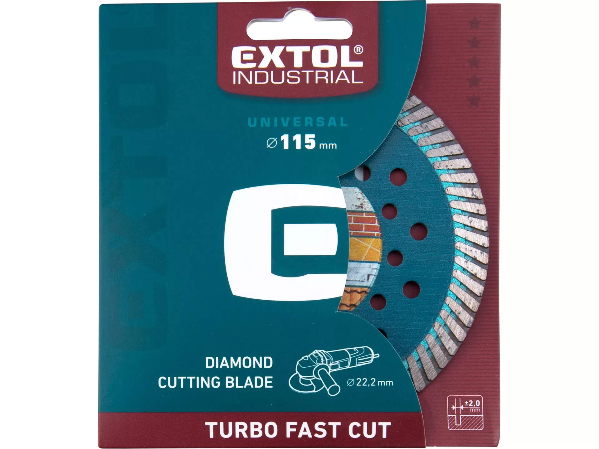Kotouč diamantový řezný, turbo fast cut, suché i mokré řezání, o 115x22,2x2mm EXTOL INDUSTRIAL 8703051