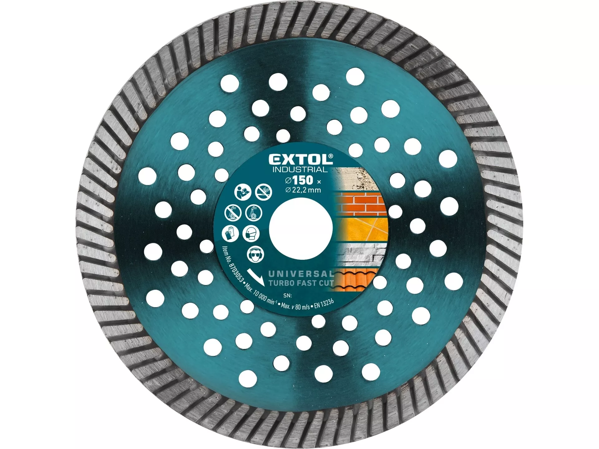 Kotouč diamantový řezný, turbo fast cut, suché i mokré řezání, o 150x22,2x2,5mm EXTOL INDUSTRIAL 8703053