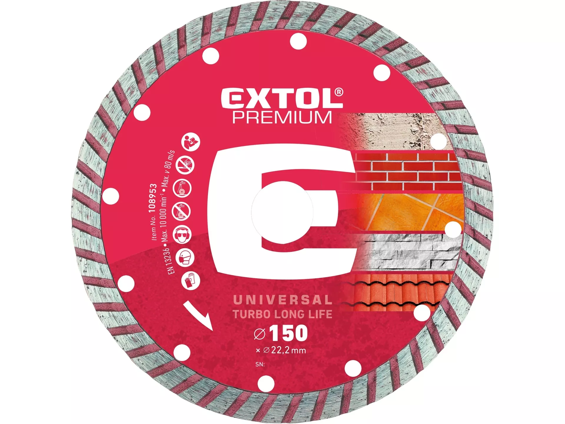 Kotouč diamantový řezný, turbo long life - suché i mokré řezání, 150x22,2x2,5mm EXTOL PREMIUM 108953