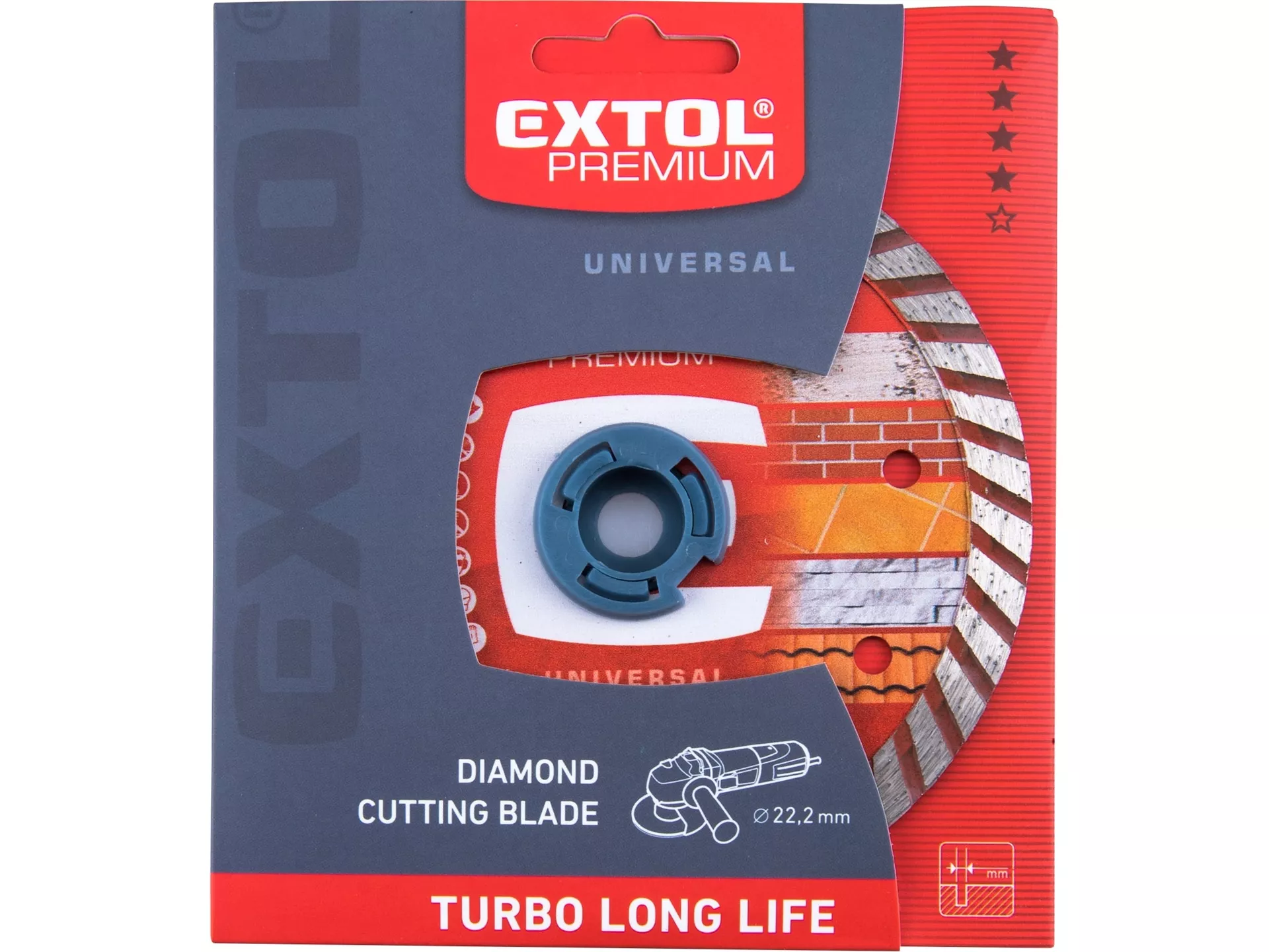 - Řada diamantových řezných kotoučů LONG LIFE s prodlouženou životností pro profesionální a poloprofesionální použití. Díky složení diamantové směsi a výšce segmentu mají kotouče až o 50% větší řezný výkon než ostatní Extol Premium kotouče.