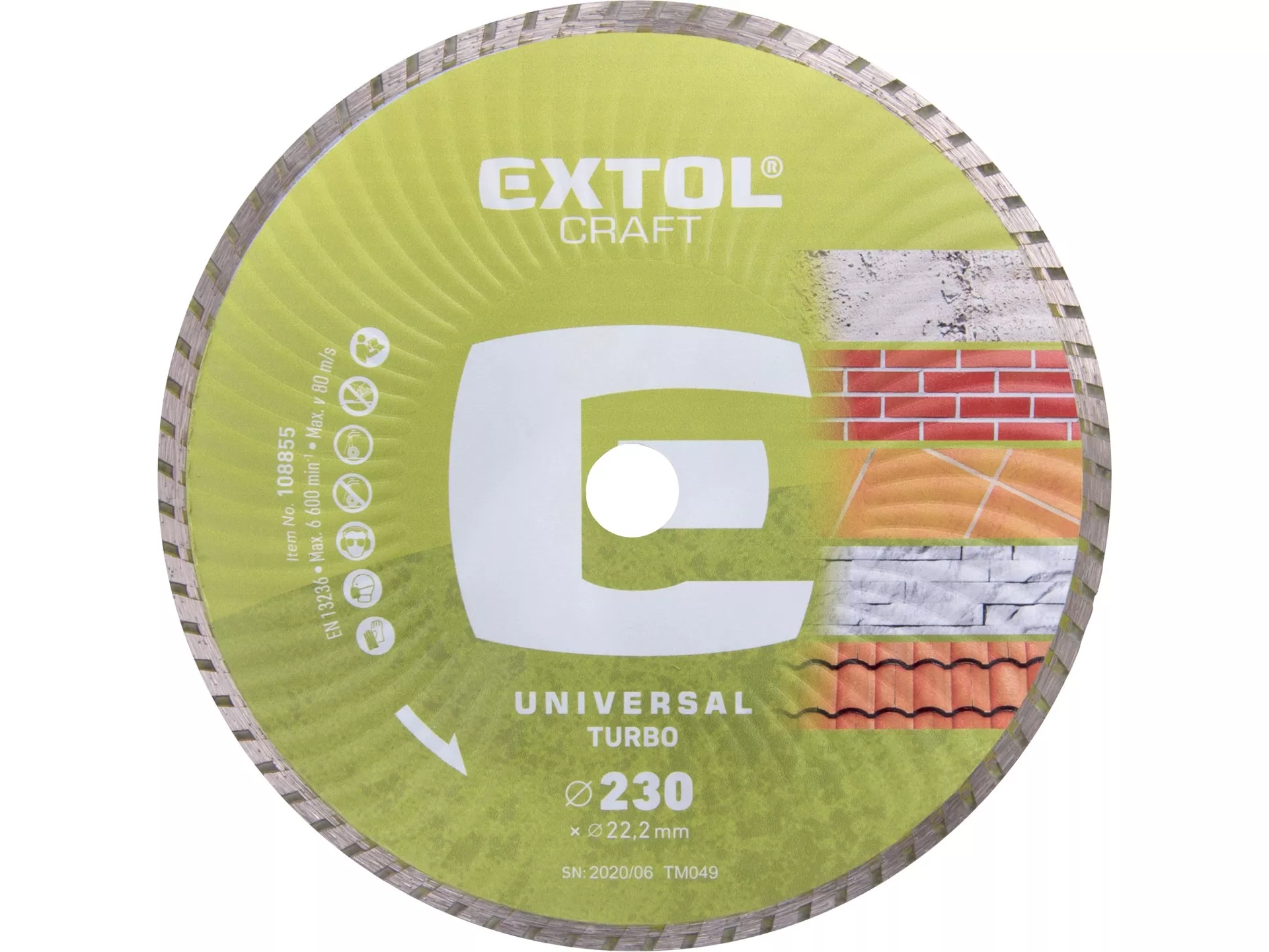 Kotouč diamantový řezný, turbo - suché i mokré řezání, o 230x22,2x2,8mm EXTOL CRAFT 108855