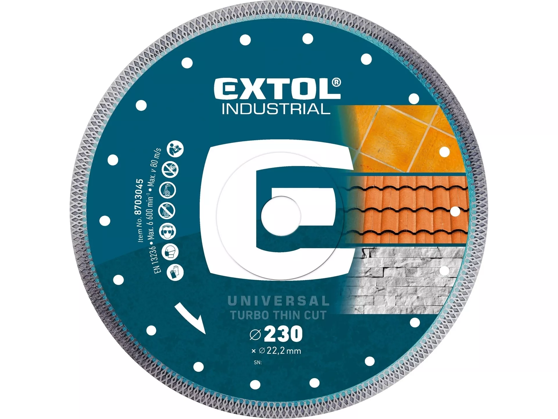 Kotouč diamantový řezný, turbo thin cut, suché i mokré řezání, o 230x22,2x2mm EXTOL INDUSTRIAL 8703045