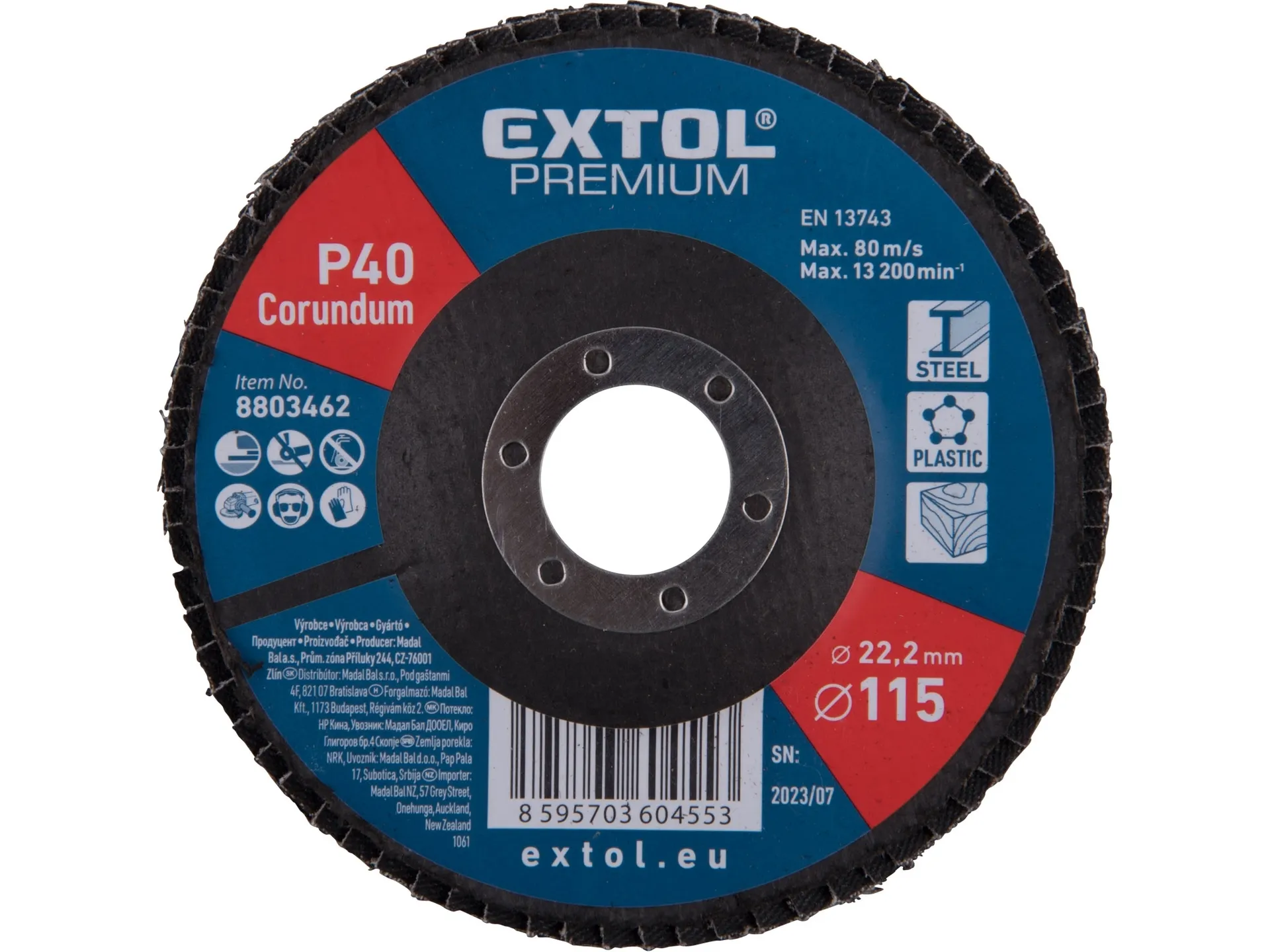 Kotouč lamelový šikmý korundový, o115mm, p40 EXTOL PREMIUM 8803462