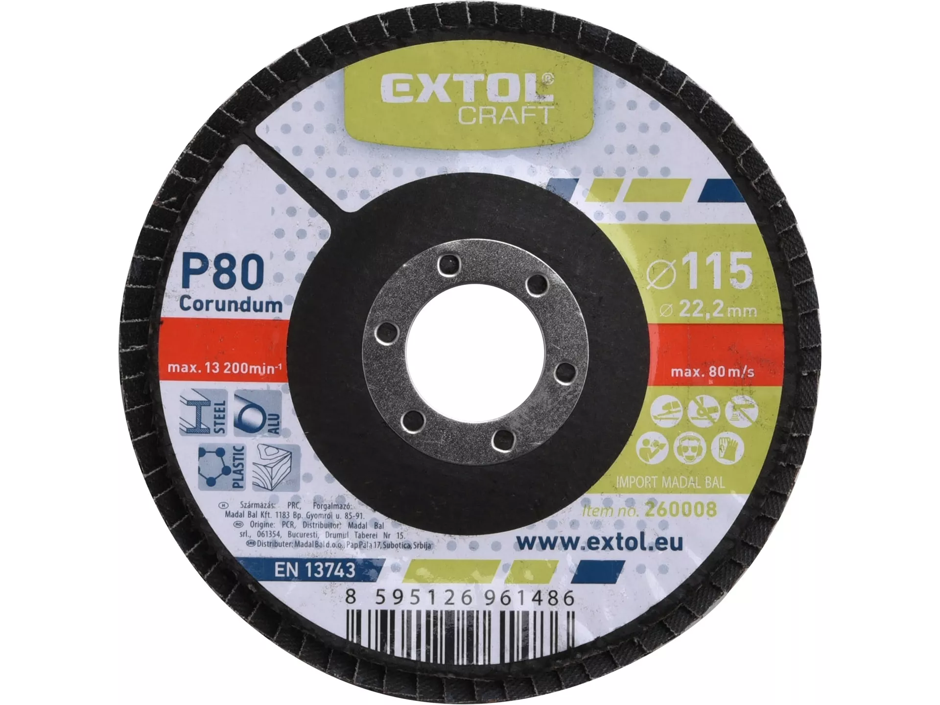 Kotouč lamelový šikmý korundový, p80, o 115mm EXTOL CRAFT 260008