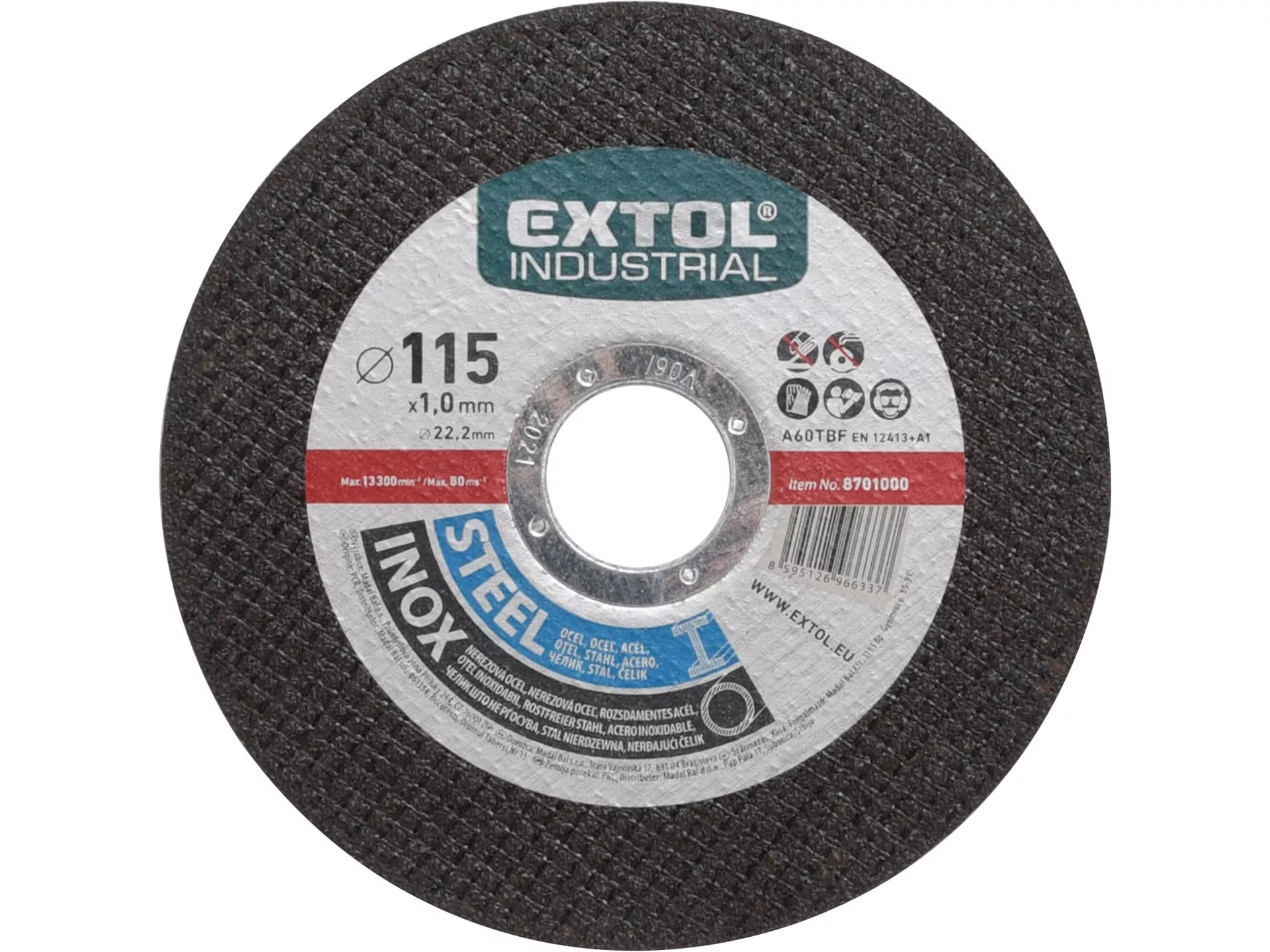 Kotouč řezný na ocel/nerez, o 115x1,0x22,2mm EXTOL INDUSTRIAL 8701000