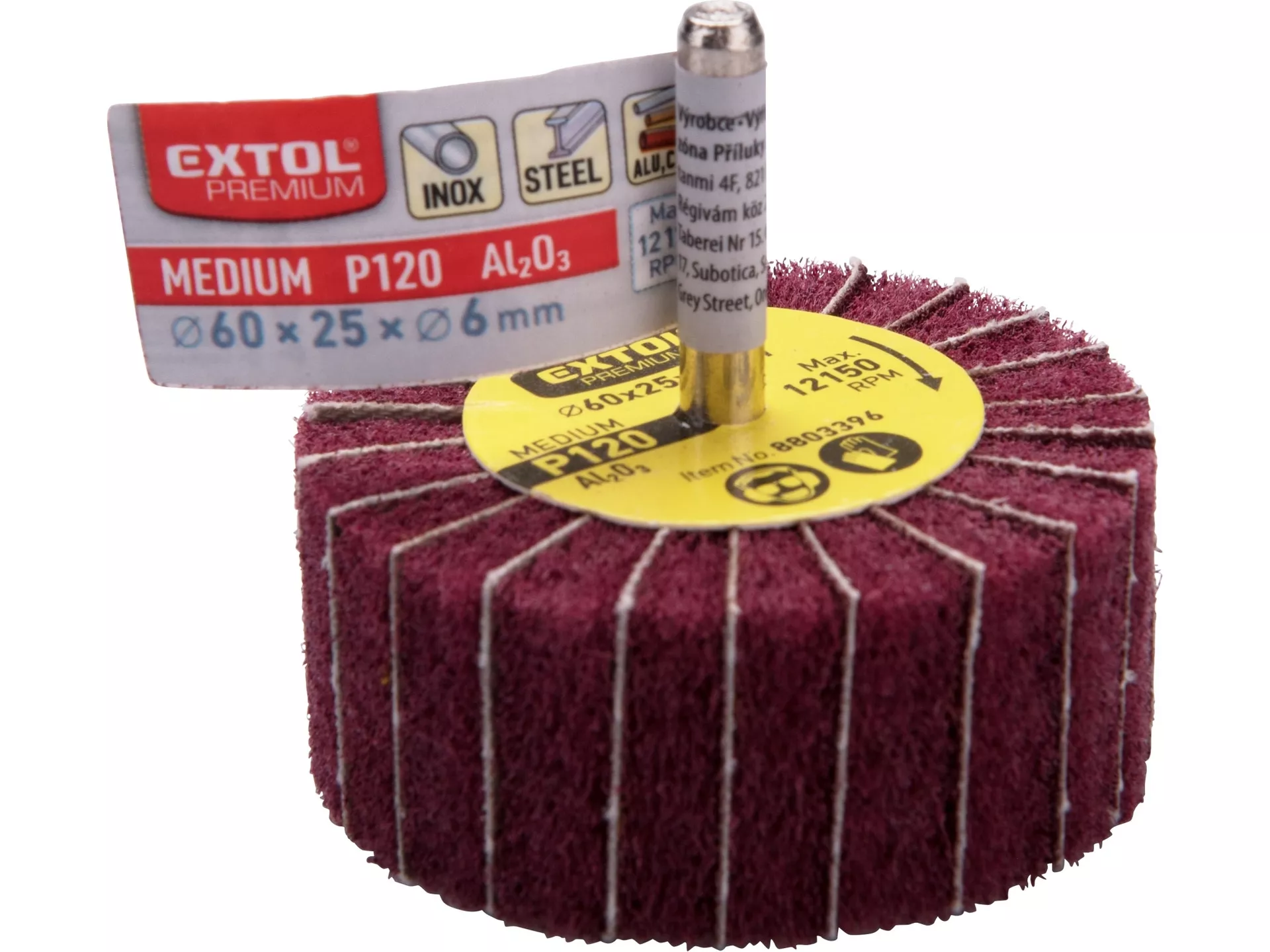 Kotouč lamelový brusný na stopce, o 20x20x6mm, p120 EXTOL PREMIUM 8803364