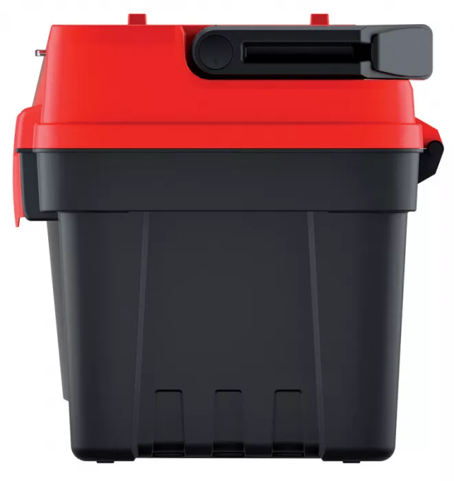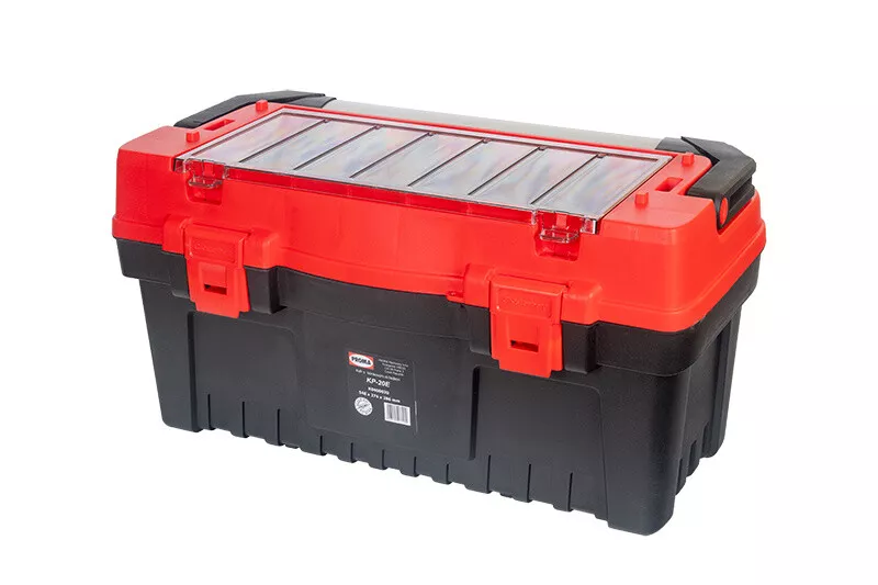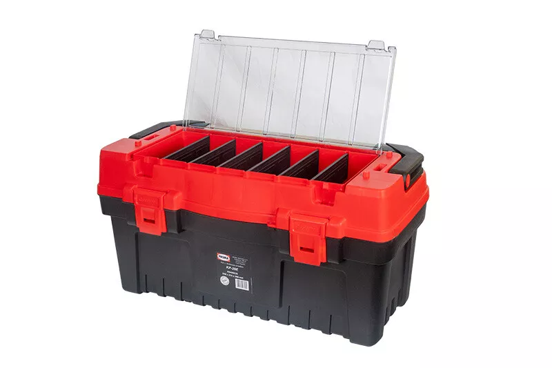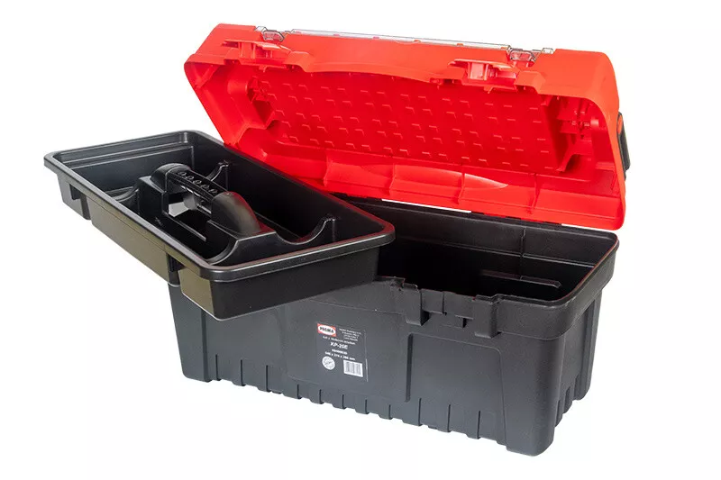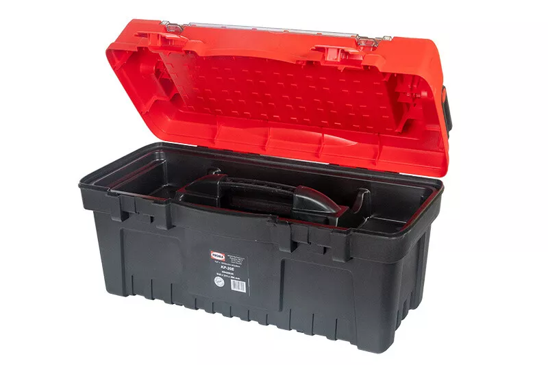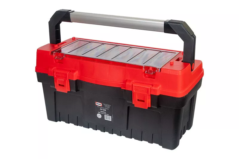 - Plastový kufr na nářadí s hliníkovým držadlem.