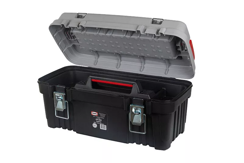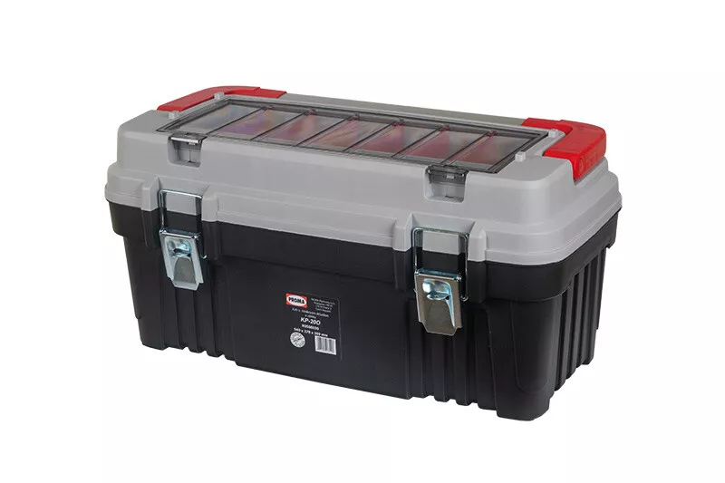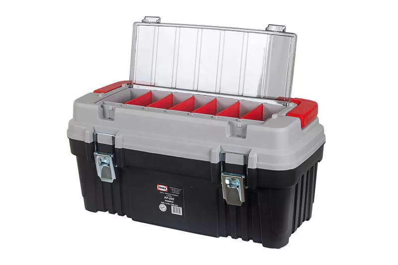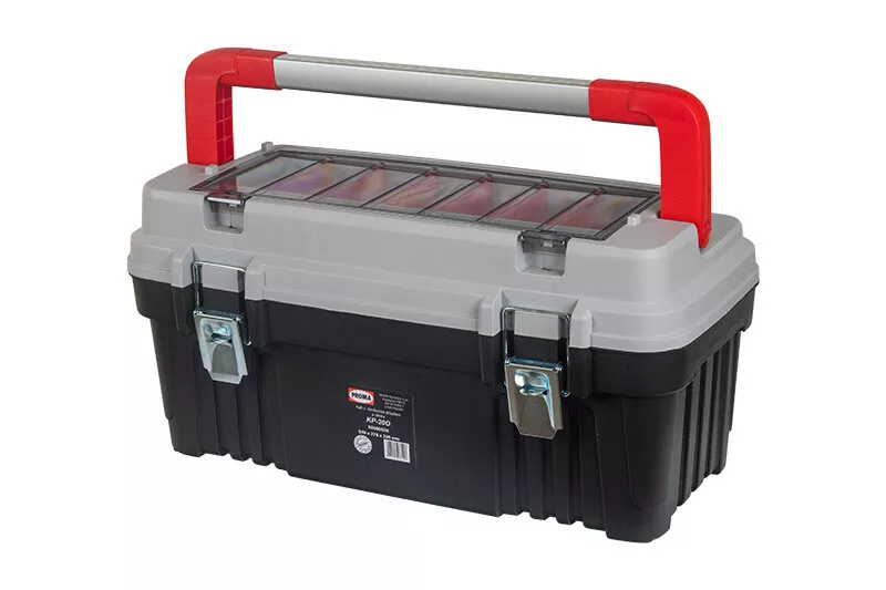 - Plastový kufr na nářadí s hliníkovým držadlem a možností uzamčení ve víku prostor s 7 přihrádkami pro uložení drobnějších věcí vyjímatelná vnitřní polička se 4 otevřenými přihrádkami hliníkové držadlo kufru kovové zavírací spony s možností uzamčení (zámek není součást balení)