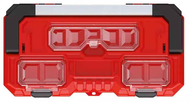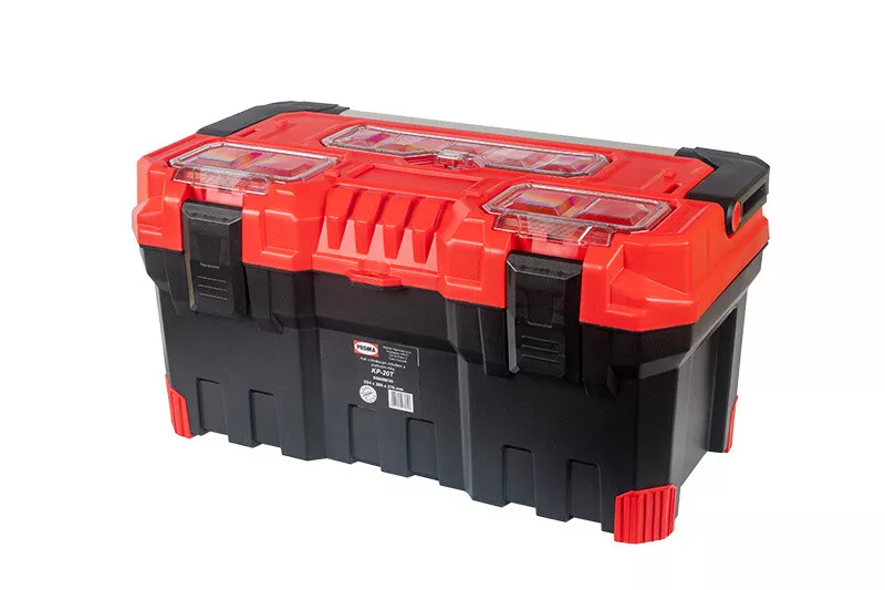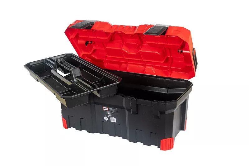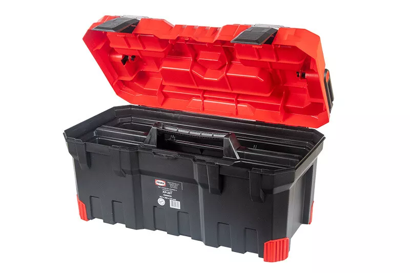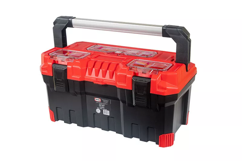 - Plastový kufr na nářadí s hliníkovým držadlem a pryžovou ochranou rohů.