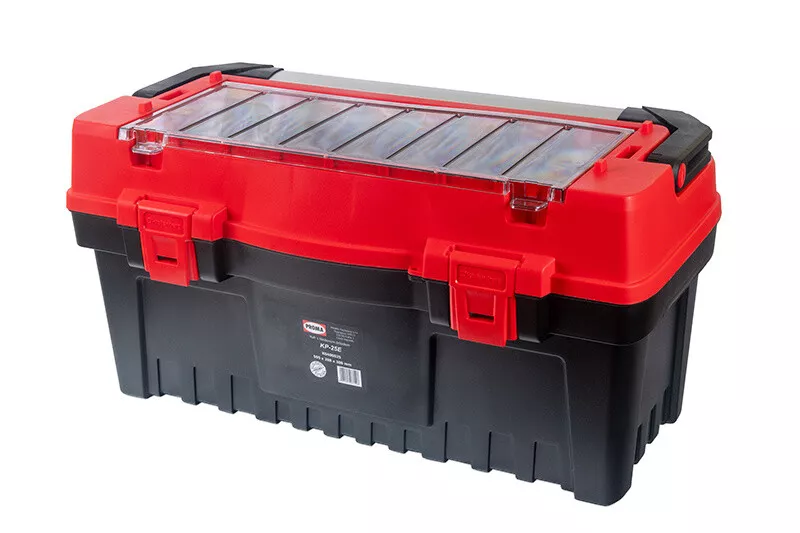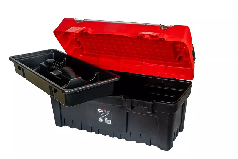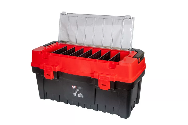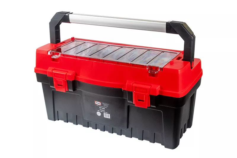 - Plastový kufr na nářadí s hliníkovým držadlem. ve víku prostor s 8 přihrádkami pro uložení drobnějších věcí