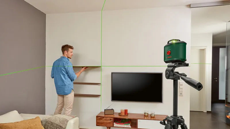 - Křížový laser UniversalLevel 360; Vysoce přesná nivelace s vynikající viditelností přes celou místnost; 360° vodorovná čára pro přesné vyrovnání celé místnosti; Dokonale vyrovnaná svislá čára pro ještě větší flexibilitu; Zelené laserové čáry: až čtyřikrát lepší viditelnost navzdory jasnému světlu; Přesné, jasně viditelné laserové čáry s přesností ±0,4 mm/m, samonivelační rozsah; Dokonalý pomocník pro montáž záclonových kolejnic, zásuvek a stropních podhledů; Nabízí prvky udržitelnosti, další informace naleznete níže; Karton eCommerce; Měkká úložná brašna; 4× baterie 1,5 V LR6 (AA)