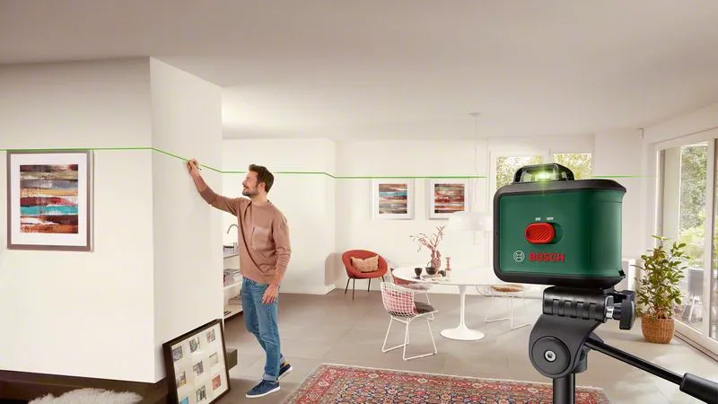 - Křížový laser UniversalLevel 360 Sada Premium; Vysoce přesná nivelace s vynikající viditelností přes celou místnost; 360° vodorovná čára pro přesné vyrovnání celé místnosti; Dokonale vyrovnaná svislá čára pro ještě větší flexibilitu; Zelené laserové čáry: až čtyřikrát lepší viditelnost navzdory jasnému světlu; Přesné, jasně viditelné laserové čáry s přesností ±0,4 mm/m, samonivelační rozsah; Dokonalý pomocník pro montáž záclonových kolejnic, zásuvek a stropních podhledů; 4× baterie 1,5 V LR6 (AA); Hliníkový stativ 1,5 m; Univerzální držák; Ochranné pouzdro
