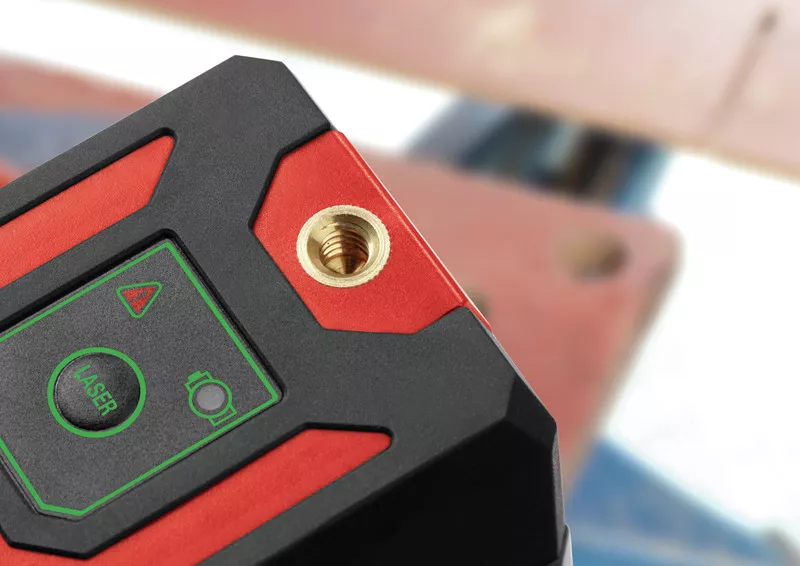 - Kromě toho je křížový laser vybaven 1/4" otvorem se závitem na horní a spodní straně pro snadné připevnění ke svorce nebo stativu.