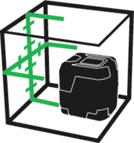 - Vrhá zkřížené horizontální a vertikální laserové čáry.