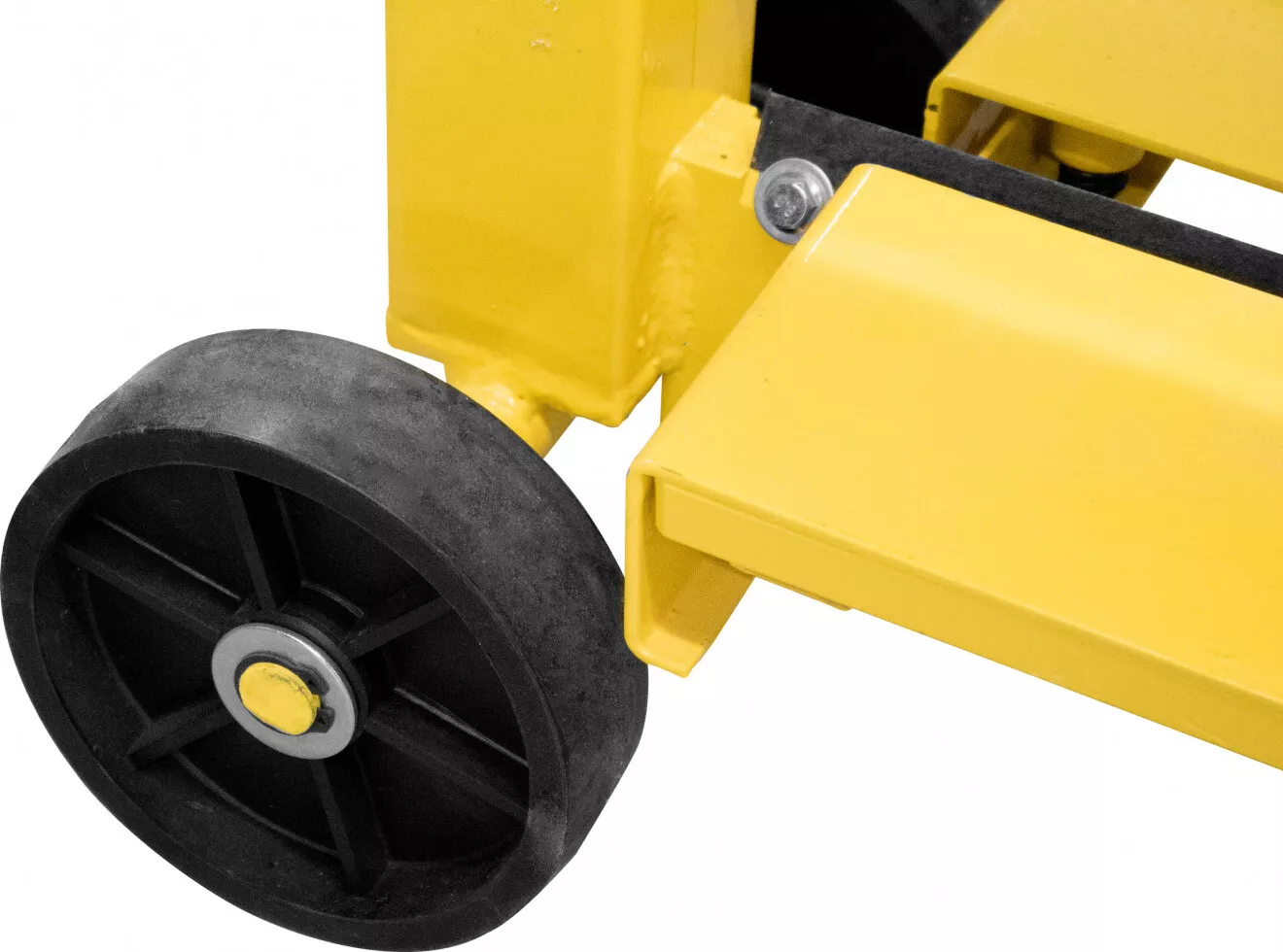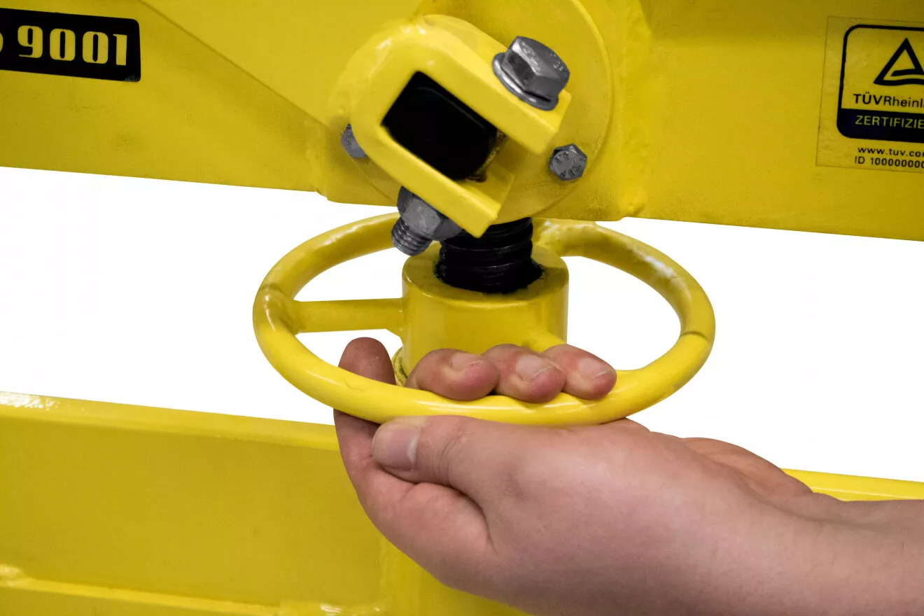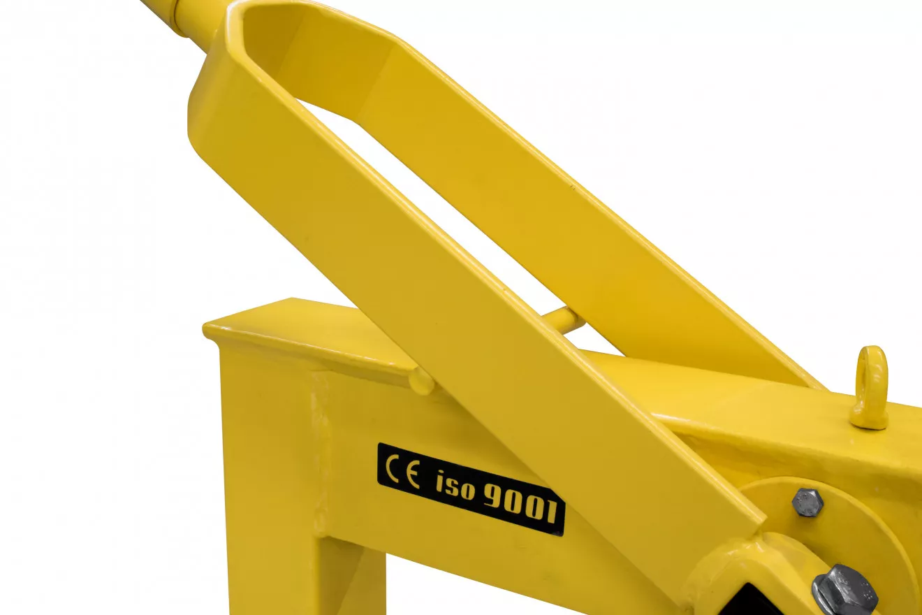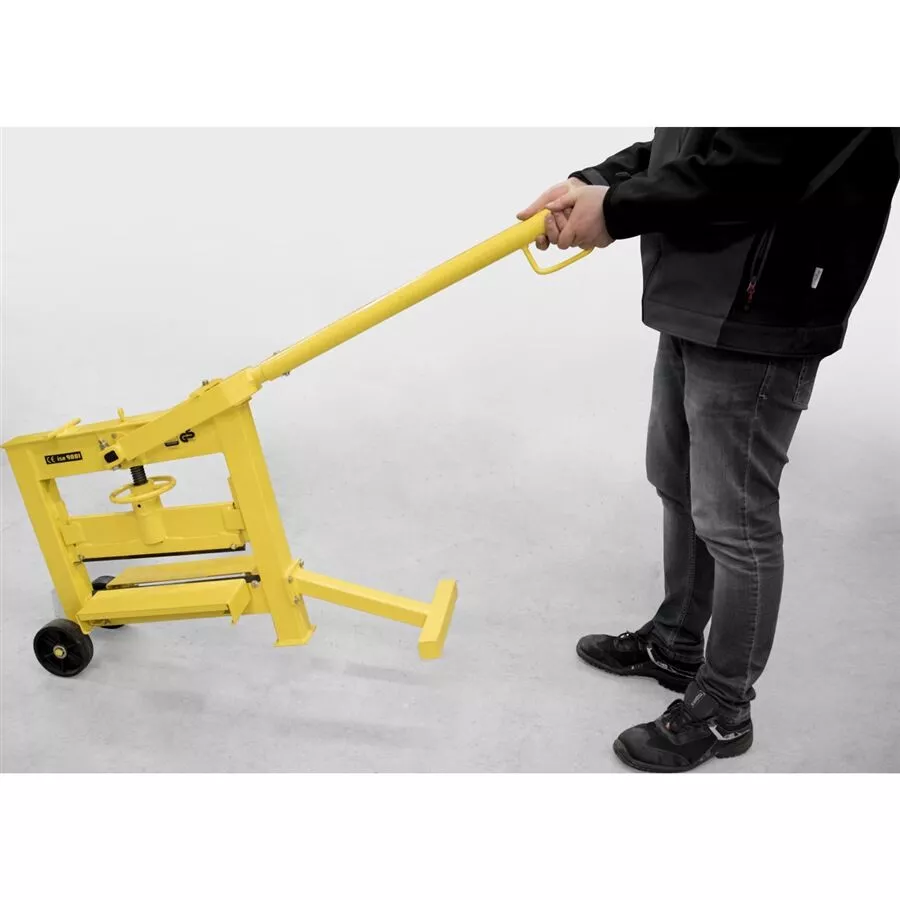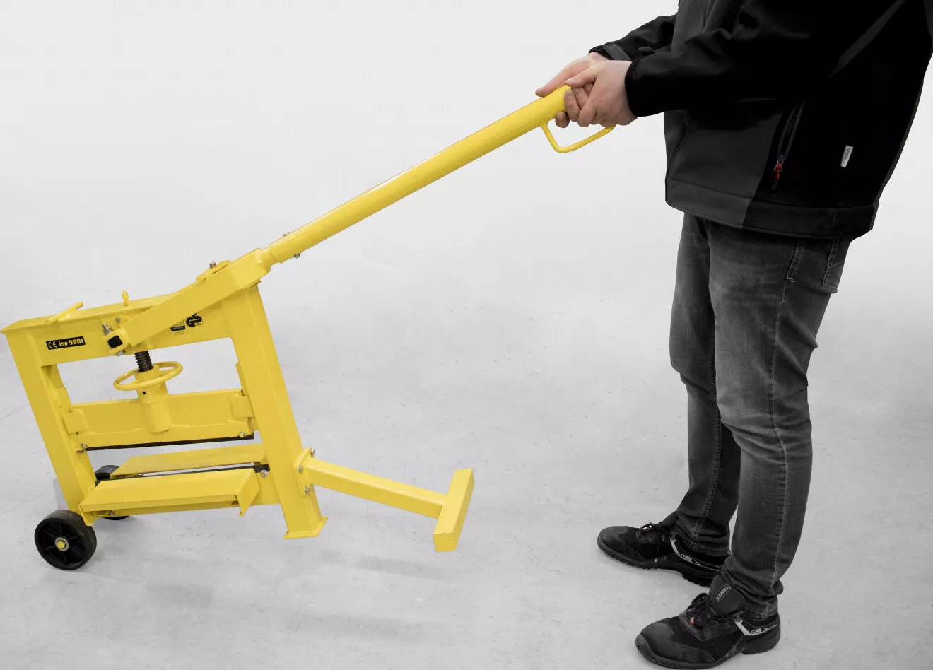 - Konstrukce: masivní ocelový rám, 2dílná páková rukojeť, pružicí podložky lámaného materiálu, závěsný šroub, transportní kola