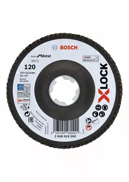 Lamelové brusné kotouče Best for Metal systému X-LOCK, šikmá verze, fíbrová deska, Ø 115 mm, G 120, X571, 1 kus BOSCH 2608619200
