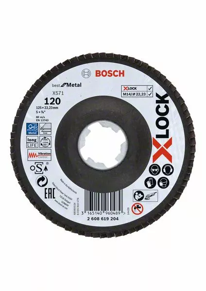 Lamelové brusné kotouče Best for Metal systému X-LOCK, šikmá verze, fíbrová deska, Ø 125 mm, G 120, X571, 1 kus BOSCH 2608619204