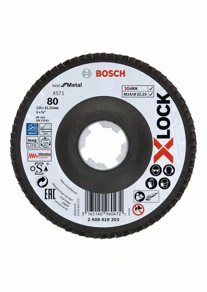 Lamelové brusné kotouče Best for Metal systému X-LOCK, šikmá verze, fíbrová deska, Ø 125 mm, G 80, X571, 1 kus BOSCH 2608619203