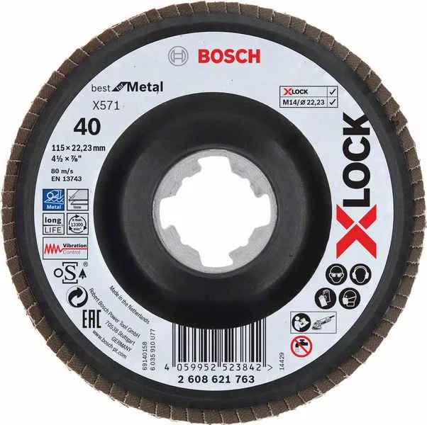 Lamelové brusné kotouče Best for Metal systému X-LOCK, šikmá verze, plastový list, Ø 115 mm, G 40, X571, 1 kus BOSCH 2608621763
