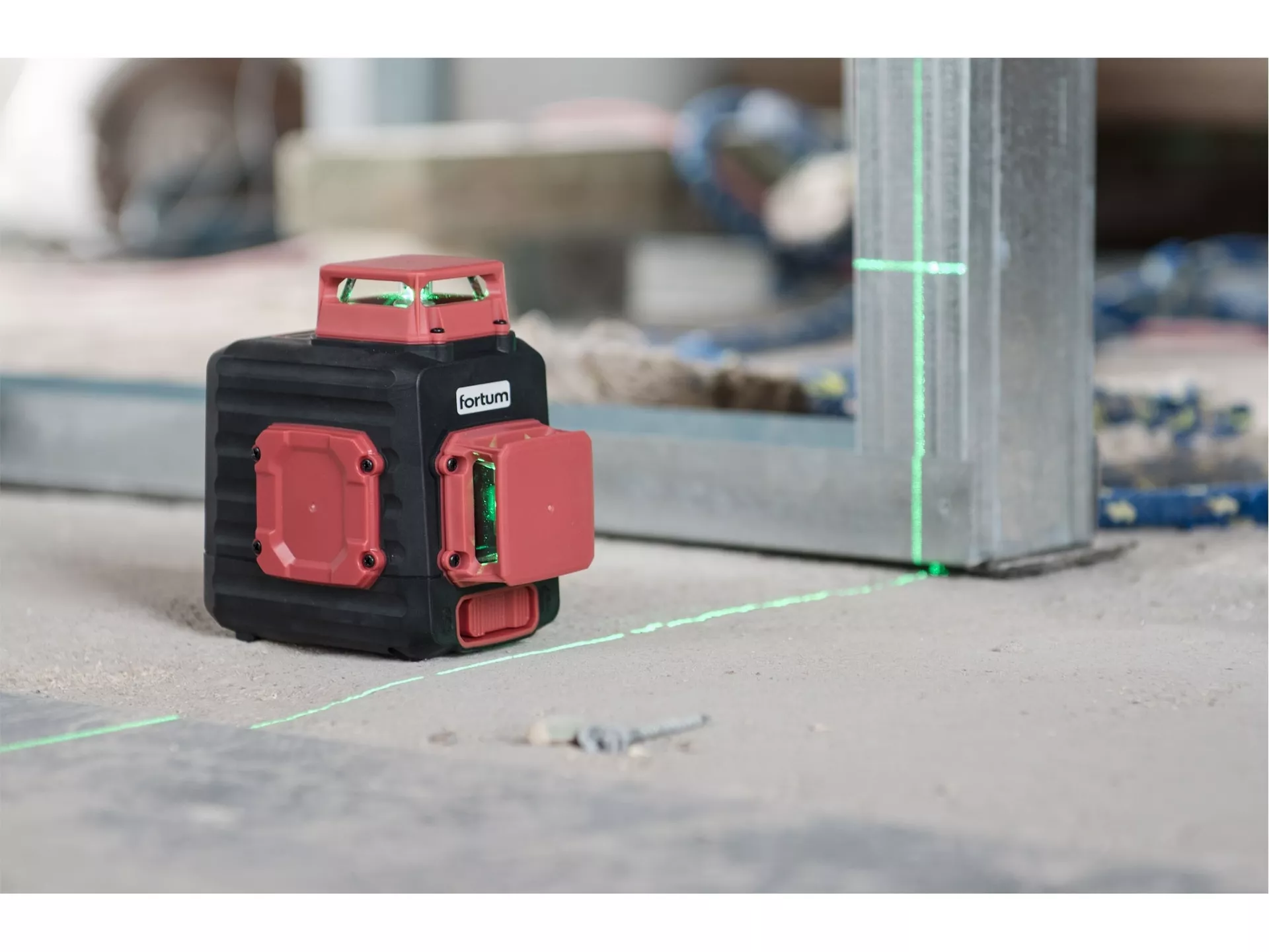 Laser zelený 3d liniový, křížový samonivelační FORTUM 4780216
