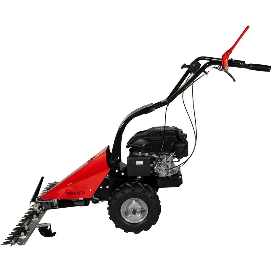 - Lištová sekačka, určená k sekání lučních trav a býlí na zemědělsky využívaných a udržovaných plochách.Rychlé (rovnoměrné) zastřižení divoce rostoucích travin na rovných i svažitých pozemcích, šetrné posekání vzrostlé trávy za účelem sušení na seno, pravidelná údržba luk, sadů, zahrad, mezí, sportovních areálů ap. Vybaveni - funkce• žací lišta na kluzných smycích (2), umožňujících sečení travnatého porostu ve stejné výšce • jednoduché nastavení vhodné rychlosti pojezdu i pohybu střihacích nožů současně pomocí plynové páčky • 4taktní OHV motor • reverzní startovací systém • PRIMER (ruční palivové čerpadlo)• výškově nastavitelná antivibrační řídítka• oddělené spouštění (ovládání) nože a pohonu vpřed• dvojitá sekací lišta• široké pneumatiky s terénním profilem