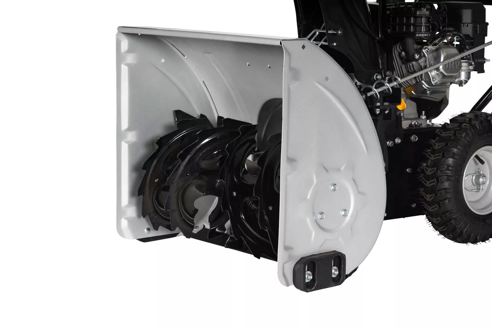 - Robustní přihrnovací šnek, odhoz sněhu až 15 metrů