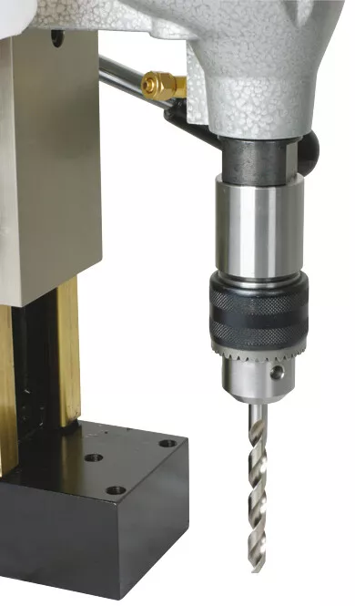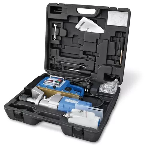 - Vrtačka byla navržena pro použití v průmyslové výrobě, stavebnictví, železnici, montáži, údržbě a mnoha dalších procesech souvisejících s použitím zařízení pro vrtání otvorů do železa. Lze využít možnost dvojitého zdvihu , kdy za pomocí jednoho inbus šroubu lze jednoduše a rychle přestavit zdvih stroje na maximum.Kombinace rychloupínání Weldon 19 mm (3/4‘) a integrovaného přívodu řezné kapaliny zajistí cílené chlazení nástroje.Masivní rybinové vedení zajišťuje minimální vibrace při nájezdu do materiálu.Vrtačka je dodávána v plastovém kufru s příslušenstvím tak, že ji z obchodu můžete odnést přímo do provozu a začít pracovat. Balení obsahuje jádrové vrtáky s vodícími hroty o průměrech 14, 16, 18 mm x 30mm, ale také olejový koncentrát, který lze naředit na požadovaný poměr a součástí jsou i ochranné pracovní brýle.