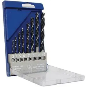 - Tato sada obsahuje 8 vrtáků do dřeva o průměrech 3–10 mm.8 vrtáků do dřeva:prům. 3 mm – délka 6 mmprům. 4 mm – délka 75 mmprům. 5 mm – délka 85 mmprům. 6 mm – délka 95 mmprům. 7 mm – délka 110 mmprům. 8 mm – délka 115 mmprům. 9 mm – délka 125 mmprům. 10 mm – délka 133 mm