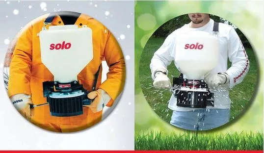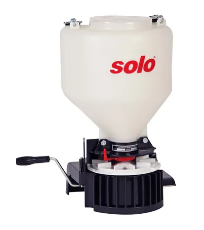- Přenosné rozmetadlo SOLO 421 je ideální aplikátor granulovaných materiálů, např. hnojiv trávníku, chemických přípravků, ale i semen a krmiv. Stroj se nese na hrudi zavěšený na popruhu přes jedno rameno. Posypový materiál propadává ze zásobníku, který pojme až 9 kg.