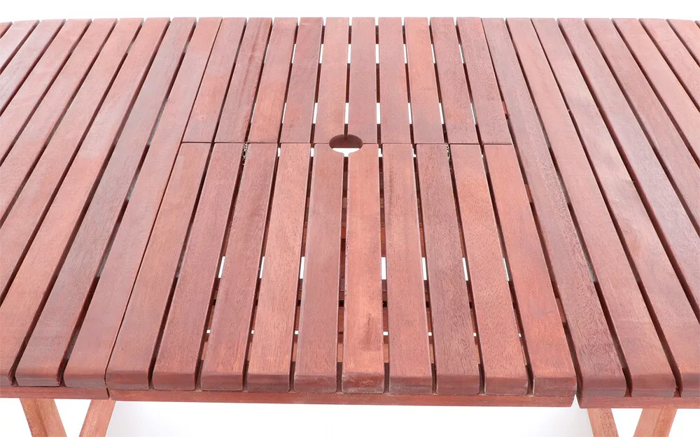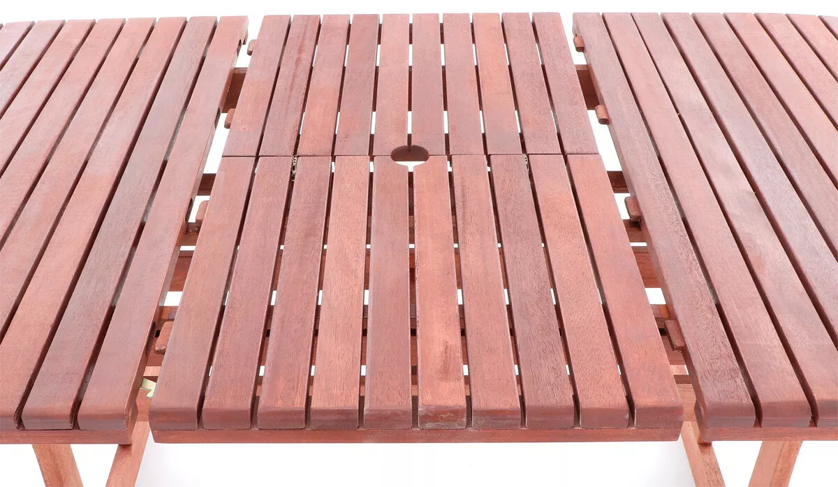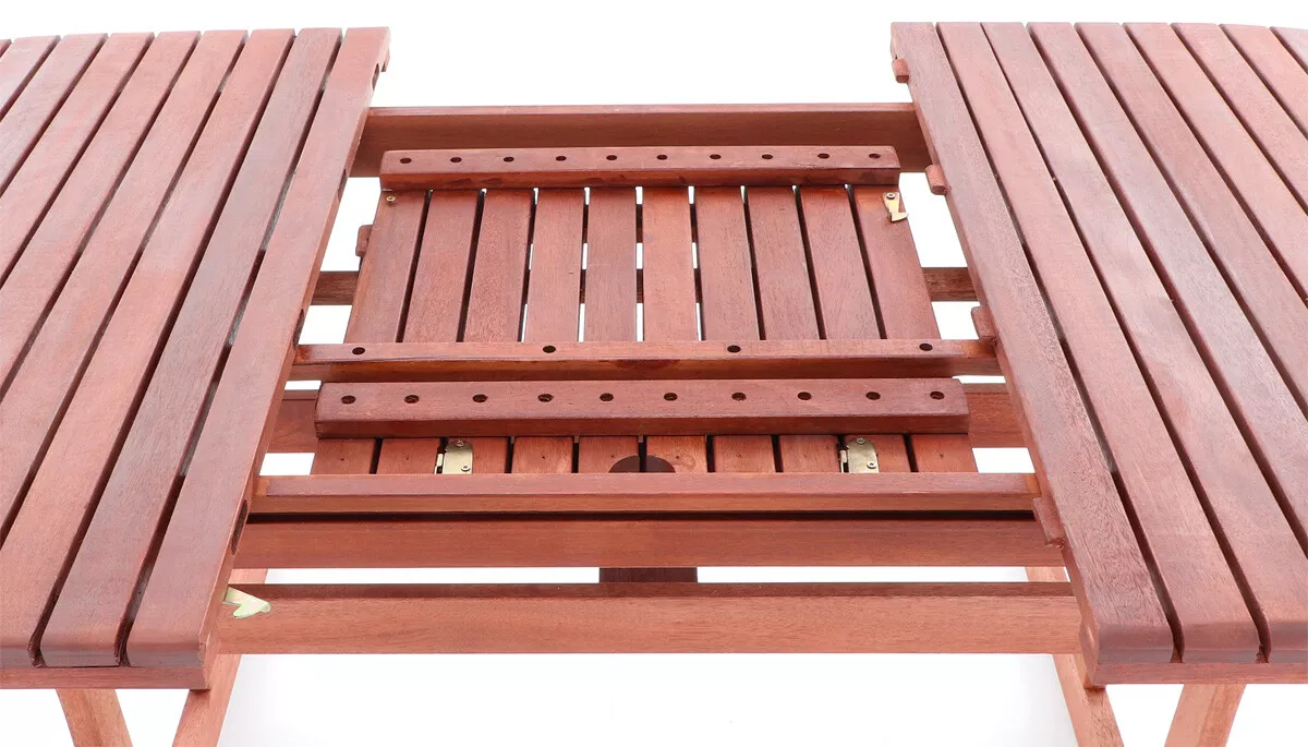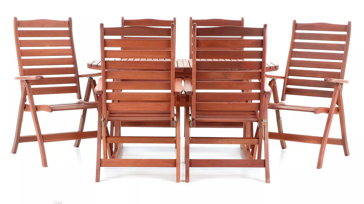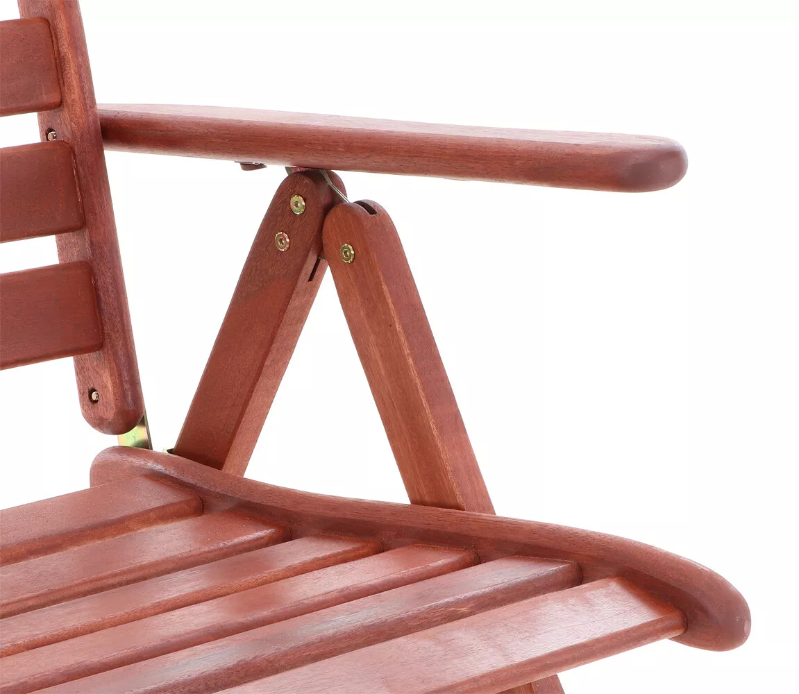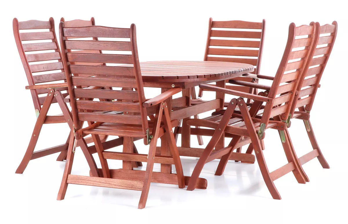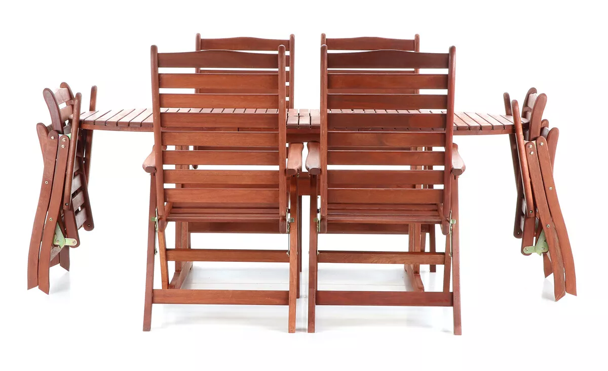 - Luxusní masivní stolová sestava 6-ti polohovatelných křesel a rozkládacího stolu z exotickeko, velice trvanlivého a tvrdého dřeva meranti.