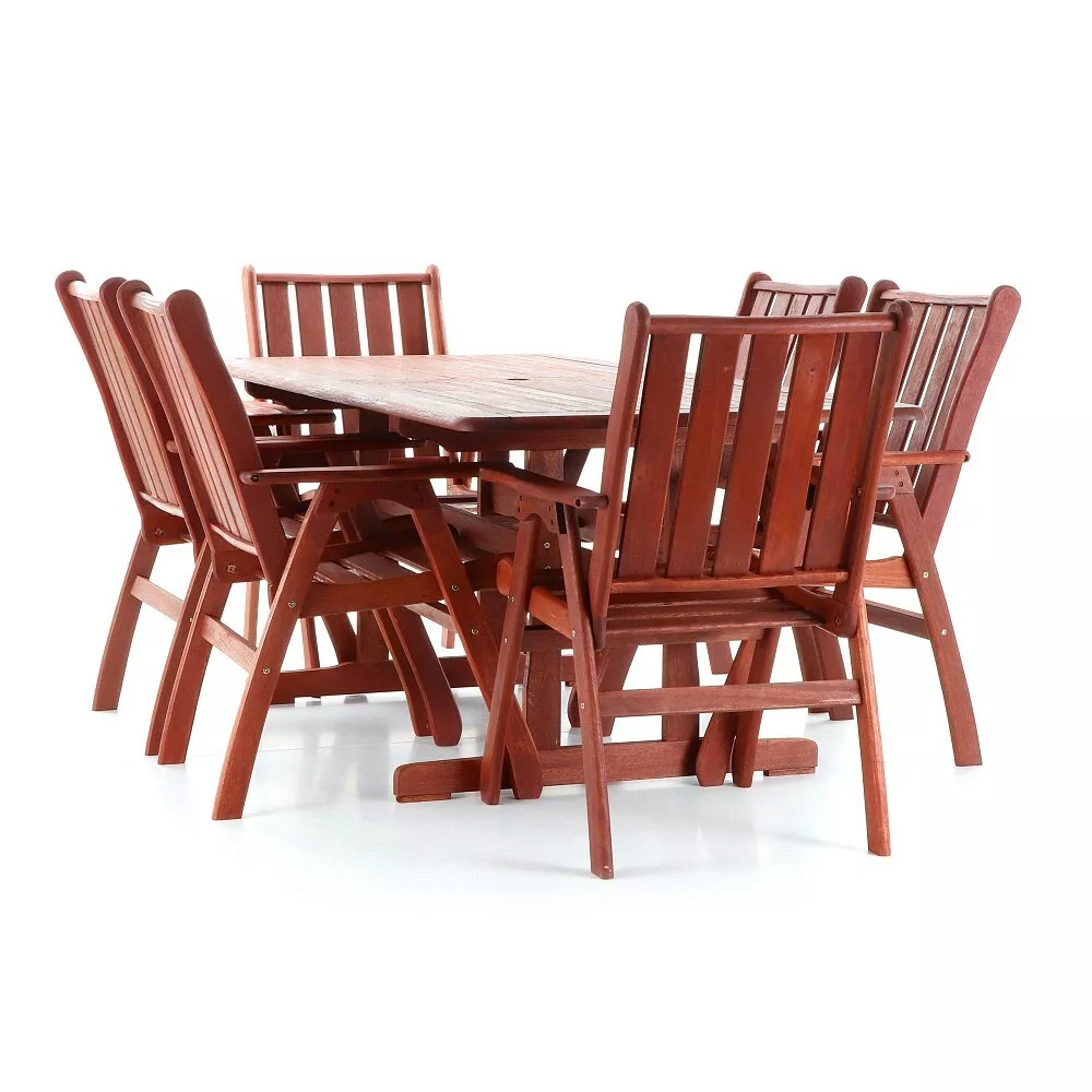- Luxusní masivní stolová sestava 6-ti křesel a stolu z exotického, velice trvanlivého a tvrdého dřeva meranti .