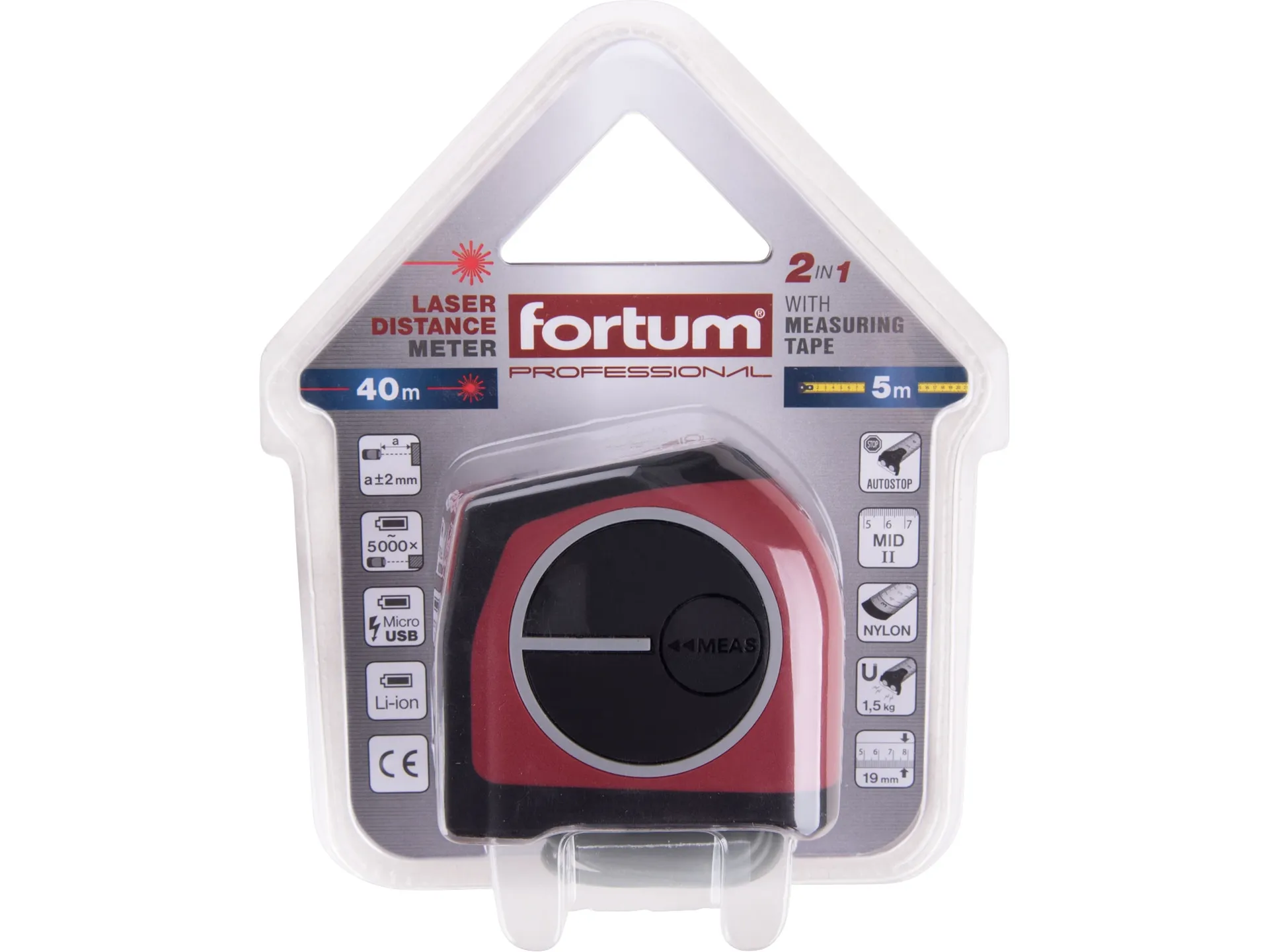 Metr laserový 40m v kombinaci s 5m svinovacím FORTUM 4780275