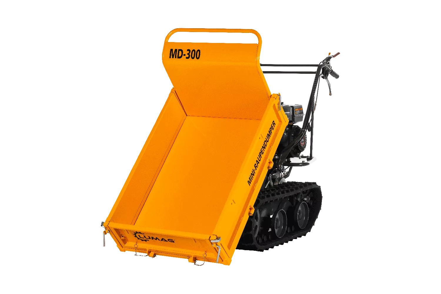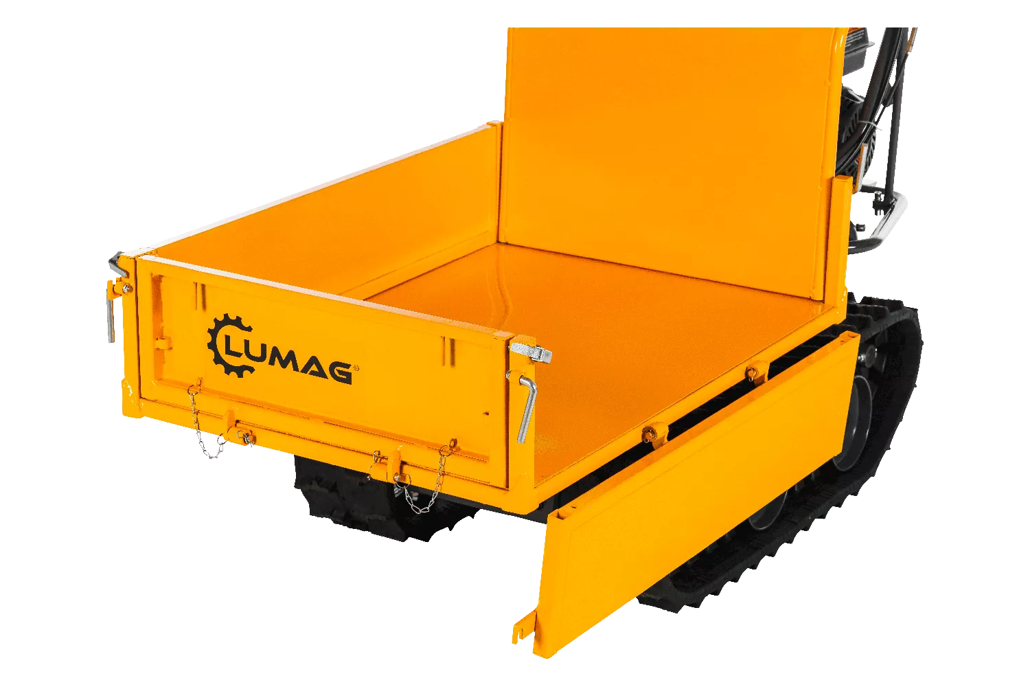 - Malý pásový sklápěč je konstruován pro snadné použití například pro převoz nákladů po náročném terénu, nebo na odklízení sněhu.