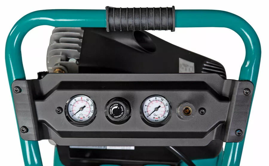 - Dodatečné spodní držadlo umožňuje pohodlné přenášení kompresoru oběma rukama