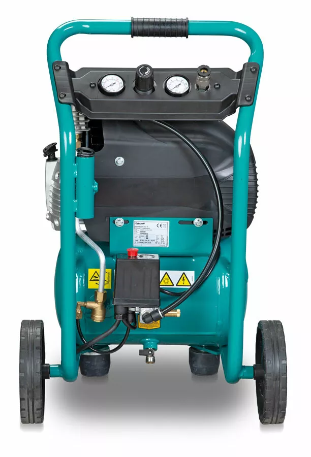 - Dodatečné spodní držadlo umožňuje pohodlné přenášení kompresoru oběma rukama