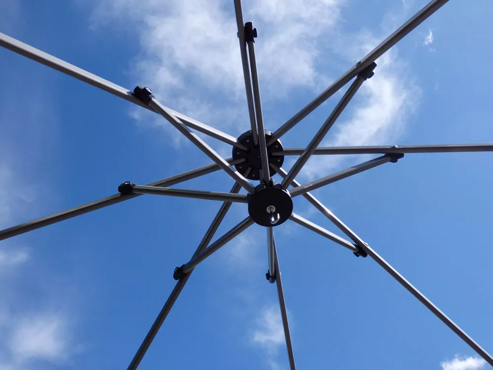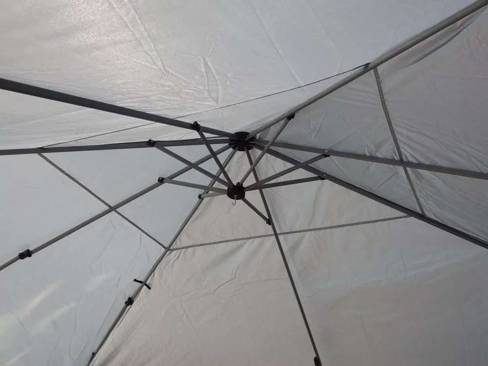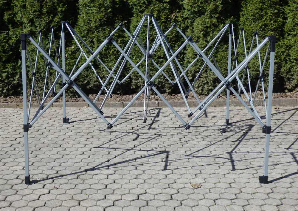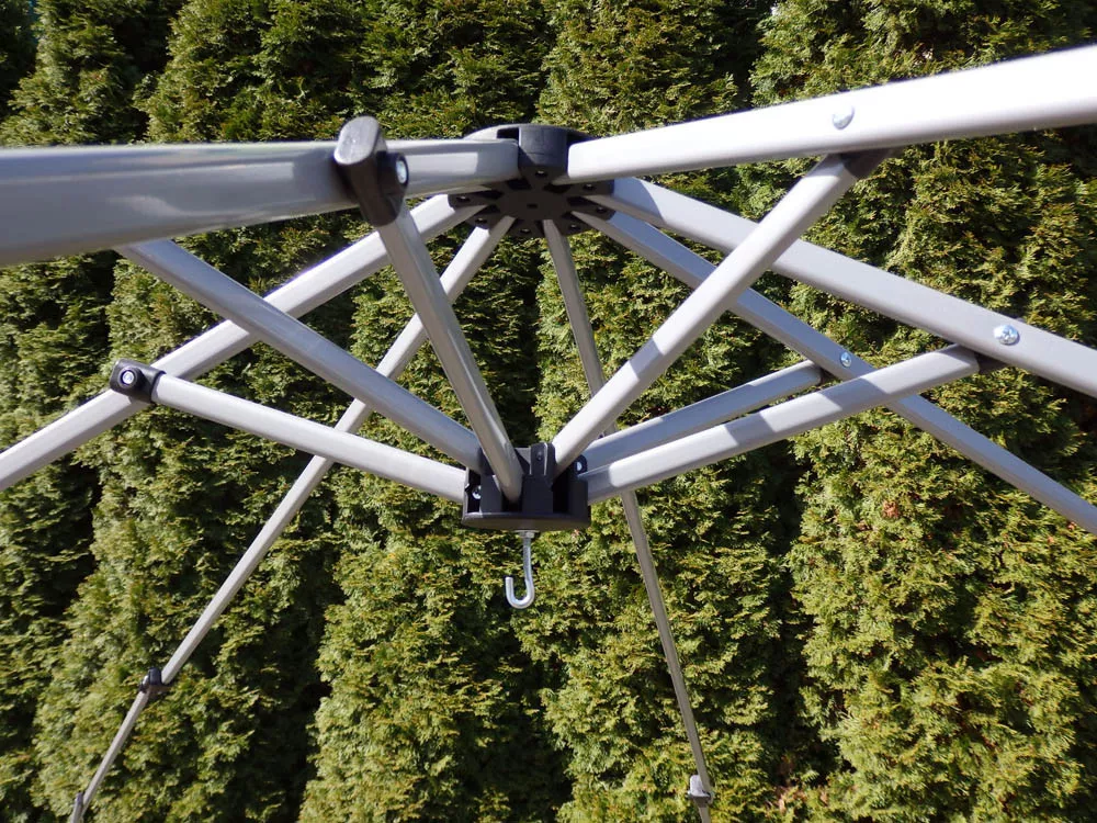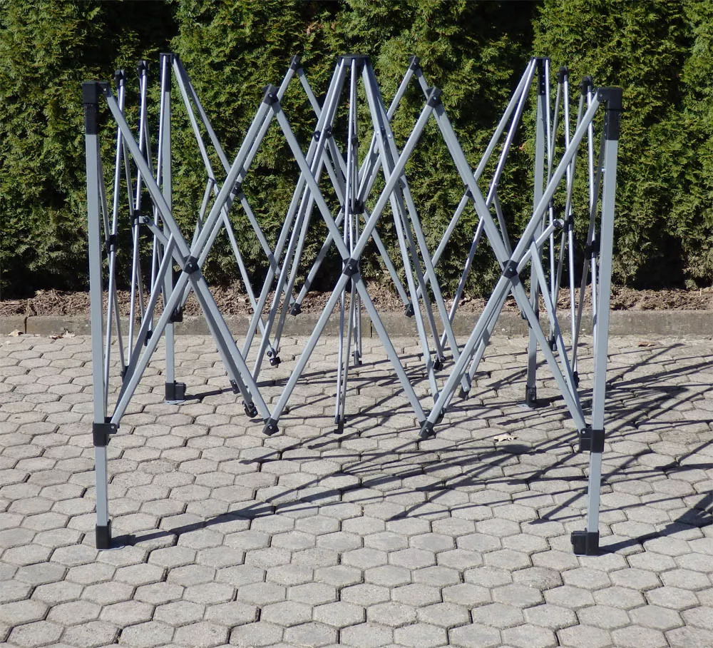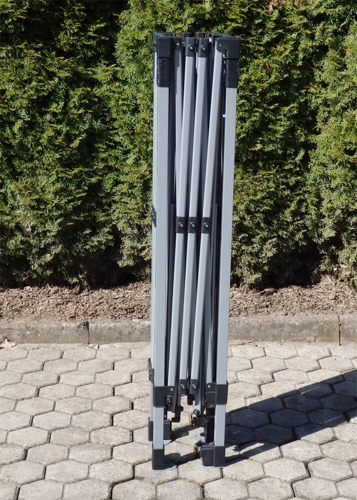 - Ocelova konstrukce se speciálním vyztužením střechy Vodni sloupec 1000 mm. Rozměry: 3,0 x 3,0 m Hmotnost: 20 kg Rozměr ve složenem stavu: 25x22x160 cm Možnost přikoupit bočnice (na dotaz).