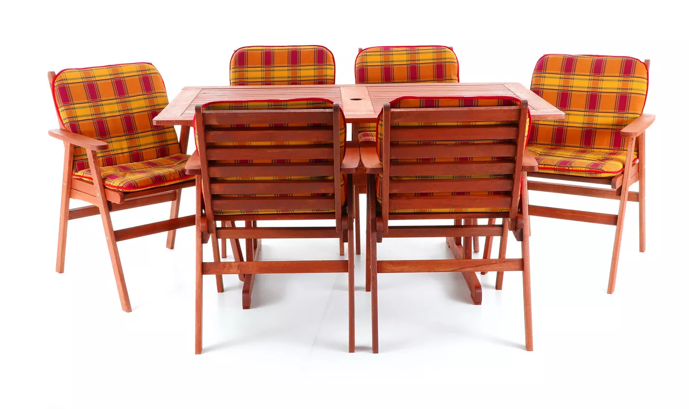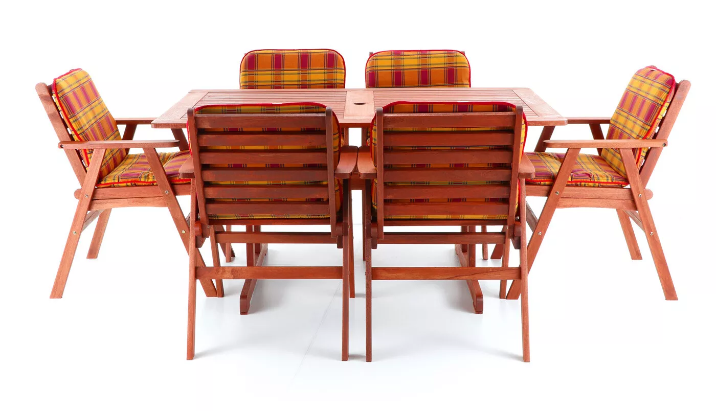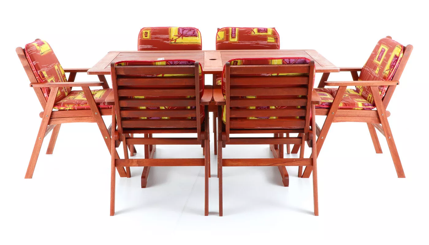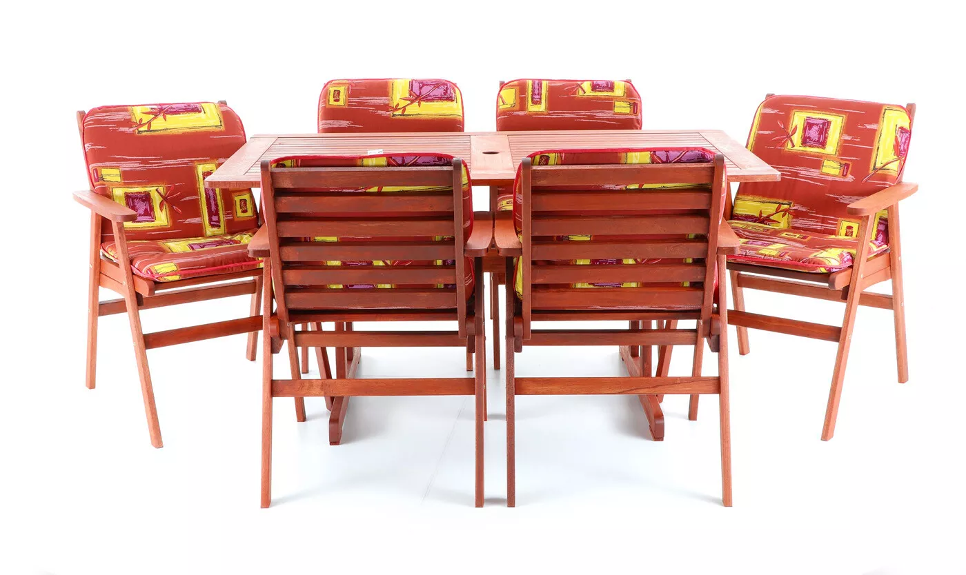 - Luxusní masivní stolová sestava 6-ti křesel a stolu z exotického, velice trvanlivého a tvrdého dřeva meranti.