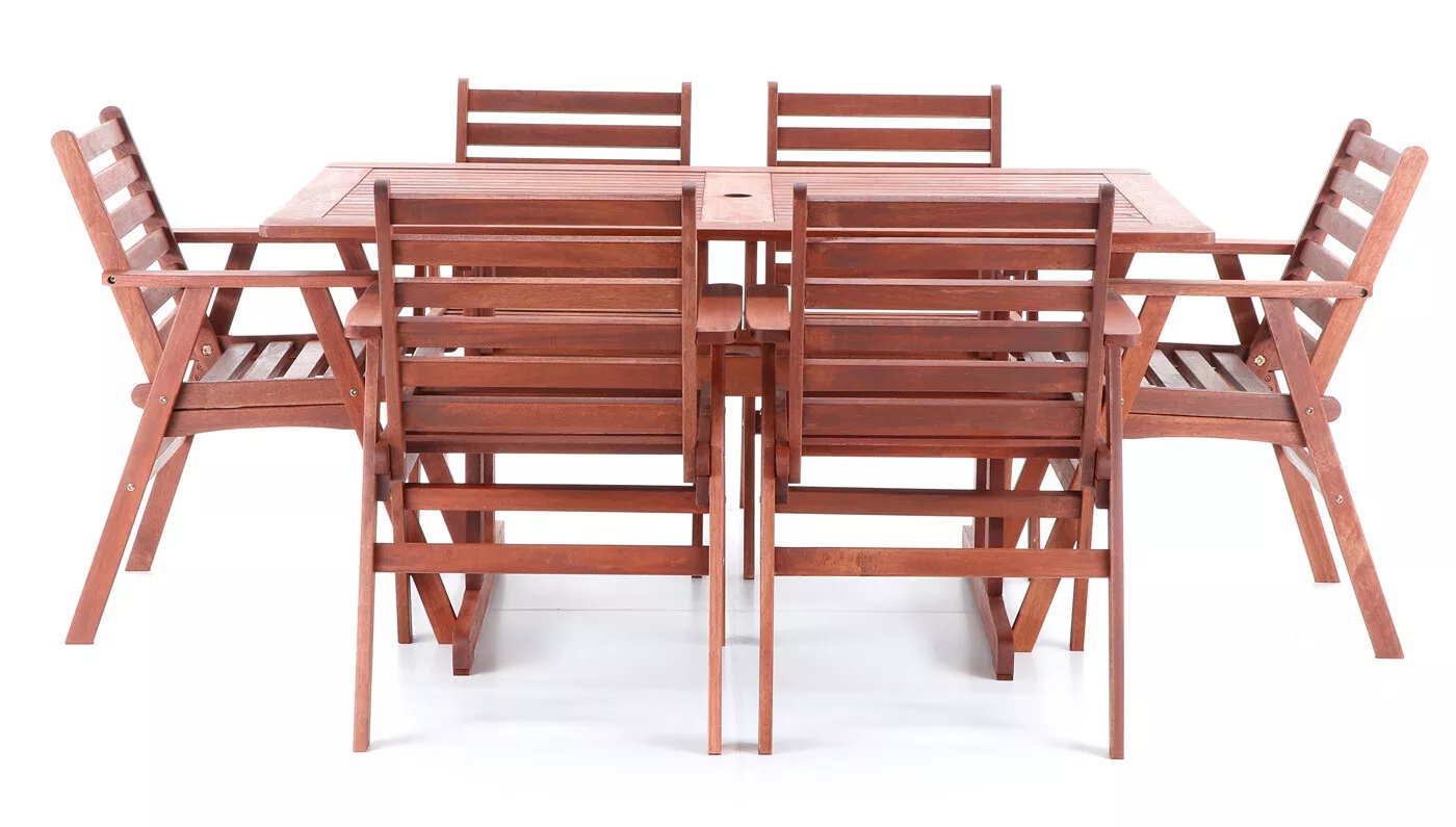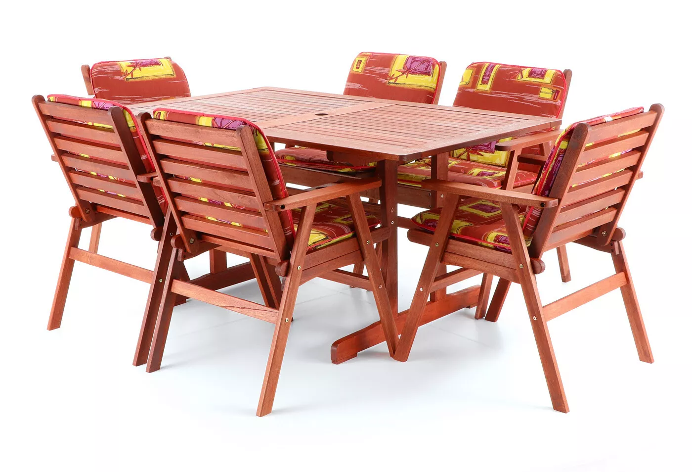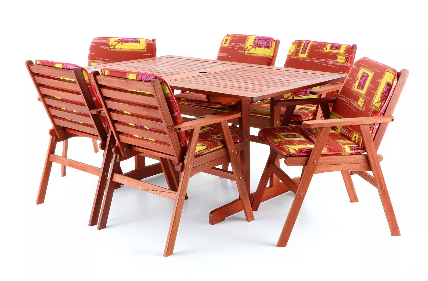 - Luxusní masivní stolová sestava 6-ti křesel a stolu z exotického, velice trvanlivého a tvrdého dřeva meranti.