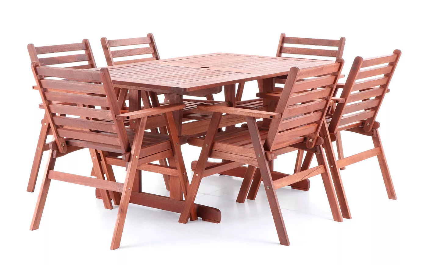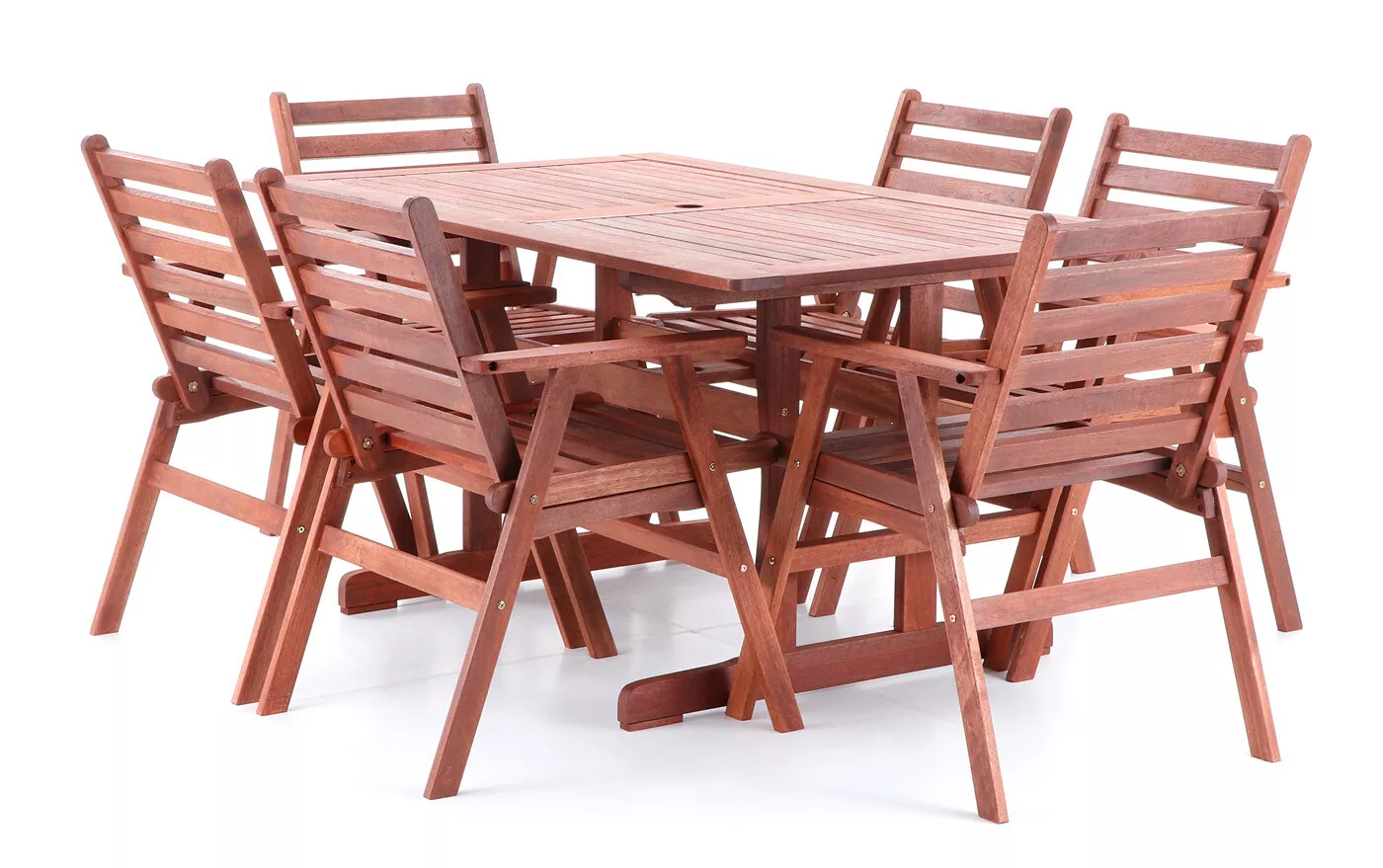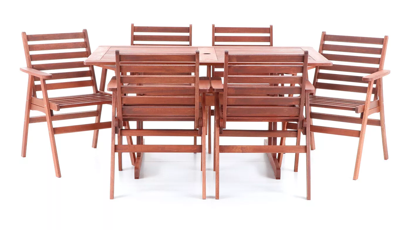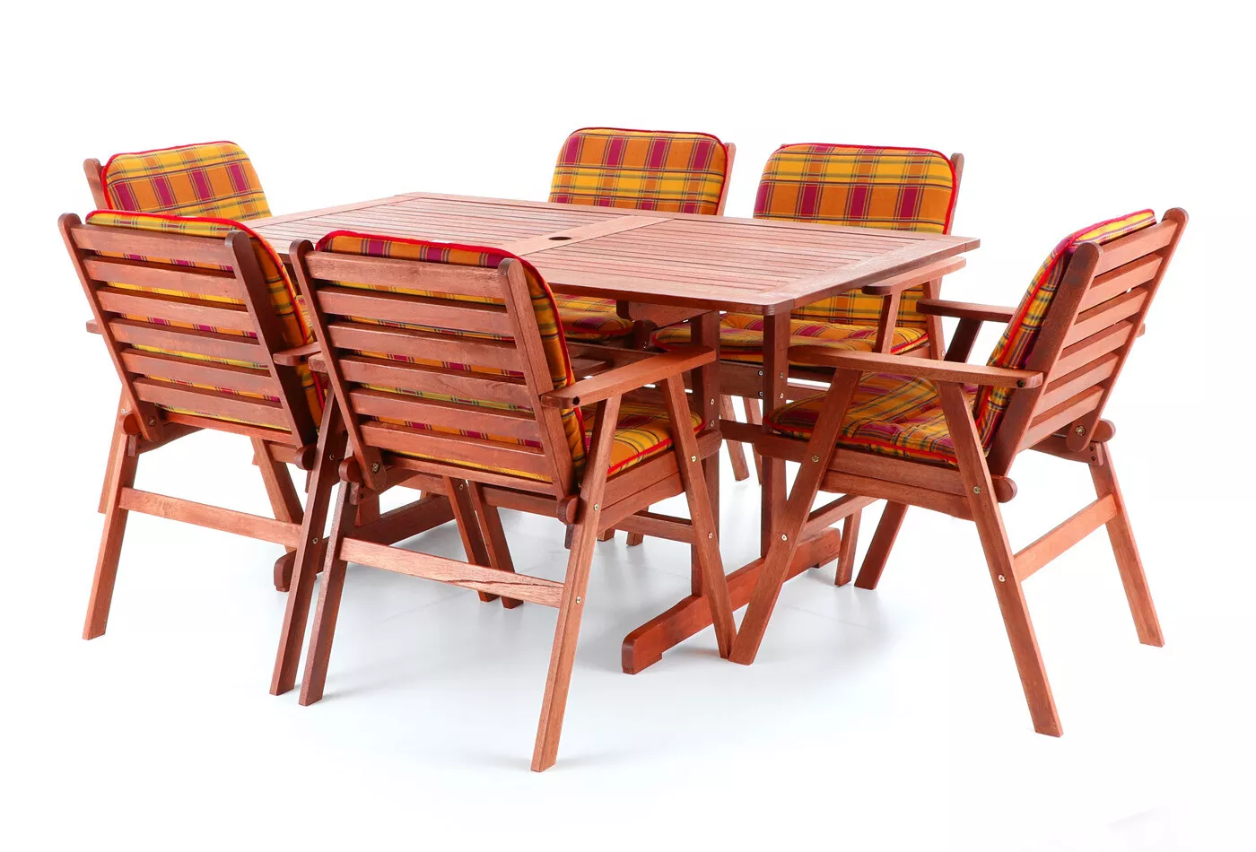 - Luxusní masivní stolová sestava 6-ti křesel a stolu z exotického, velice trvanlivého a tvrdého dřeva meranti.