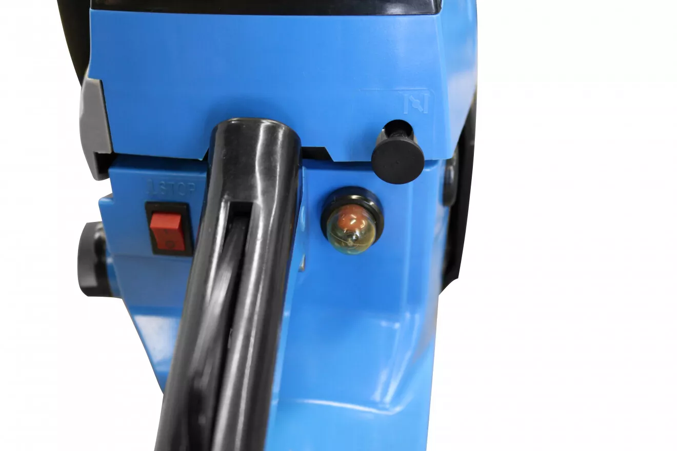 - Řetězová brzda, bezpečnostní STOP spínač, účinné tlumení vibrací (6bodové antivibrační uložení zadní rukojeti)