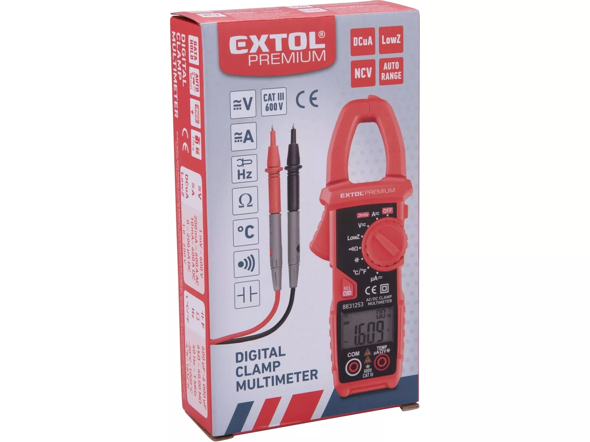 Multimetr digitální, klešťový, ac/dc proud a napětí, true rms, lowz, automatická volba rozsahů EXTOL PREMIUM 8831253