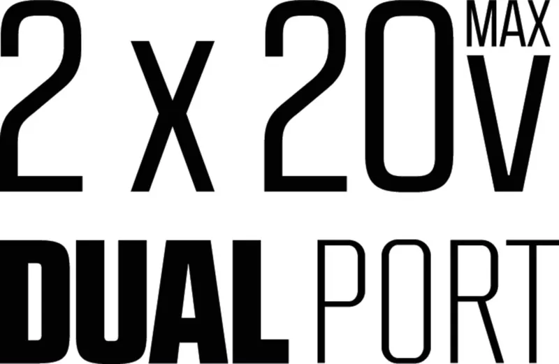 - Duální nabíječka 2× „20V Max“ (18 V).