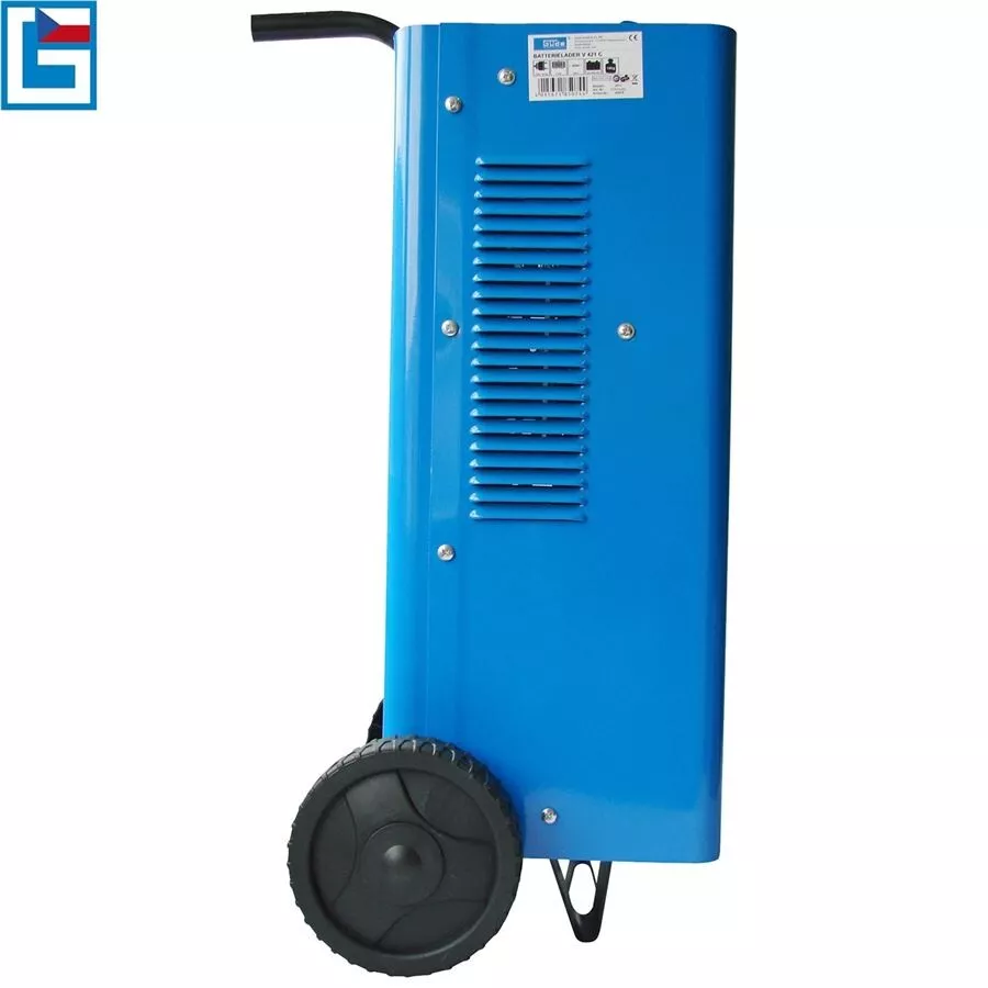 - Konstrukce: obslužný panel s ampérmetrem a pólovými přípojkami 12/24 V, nabíjecí kabely se svorkami, korpus nabíječky z ocelového plechu, praktický box pro ukládání kabelů, přední opěrné nožky, pojezdová kola a transportní madlo pro usnadnění manipulace s nabíječkou.Celkové rozměry (d x š x v): 330 x 250 x 600 mm, min