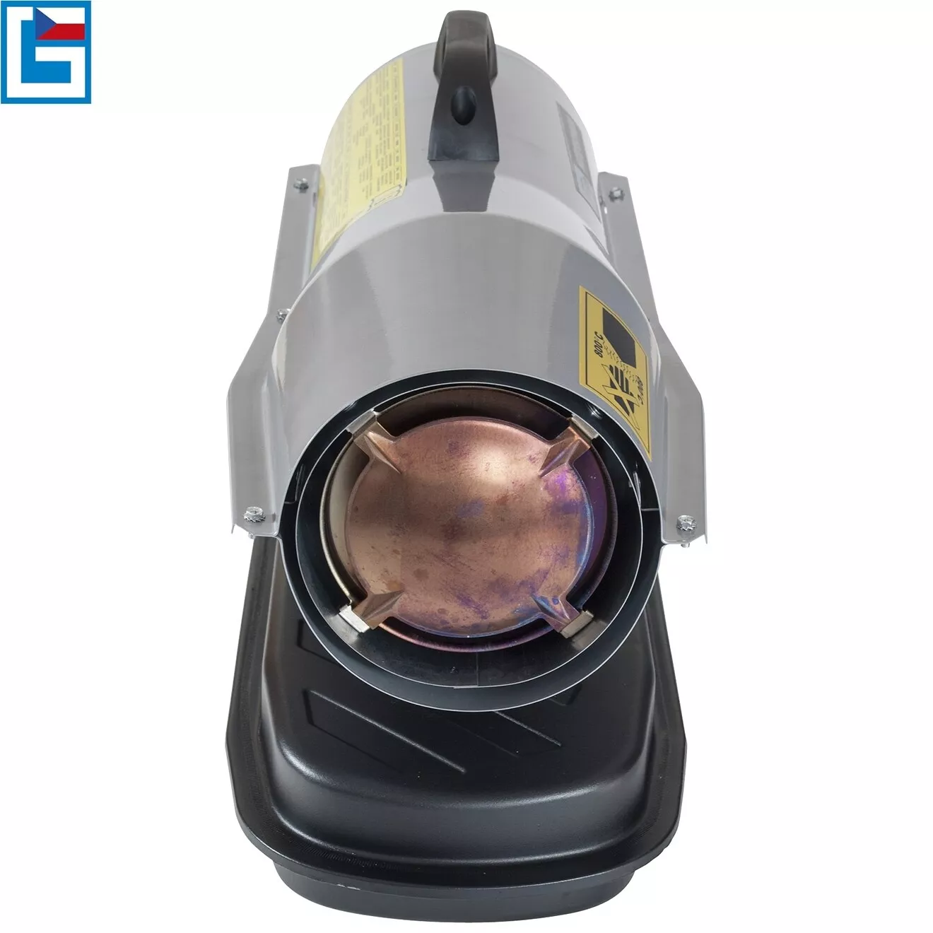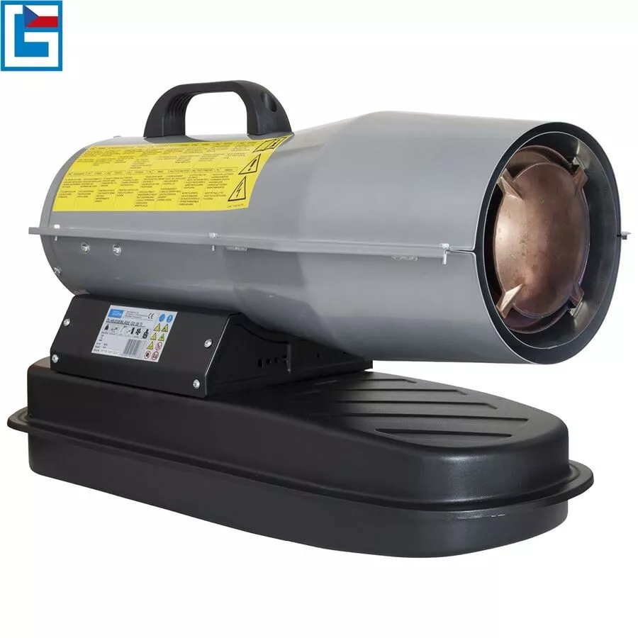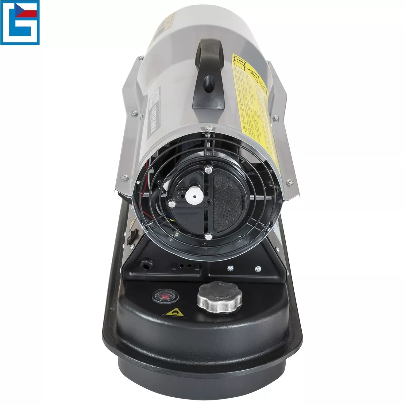 - Konstrukce: plášť turbíny z oceli (-> dvojitý), hořák z ušlechtilé oceli, opěrný podstavec s ovládacími prvky, 10 l palivová nádrž (-> včetně palivoměru, průměrná spotřeba: 1,7 l/hod.), transportní madlo